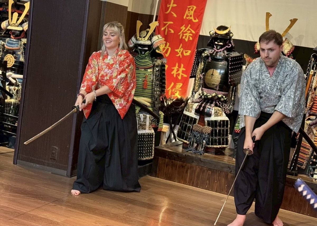 ✨本日のサムライ✨ アメリカからお越しのお客様に #サムライ体験 をお楽しみいただきました😊 お二人とも熱心にお稽古をされ素敵な立ち回りを披露しくださいました😊 #相良元城 #三嶋亮太 #遥 #インバウンド #samuraiexperience #サムライシアター東京 pic.x.com/a8rM6qGy8g