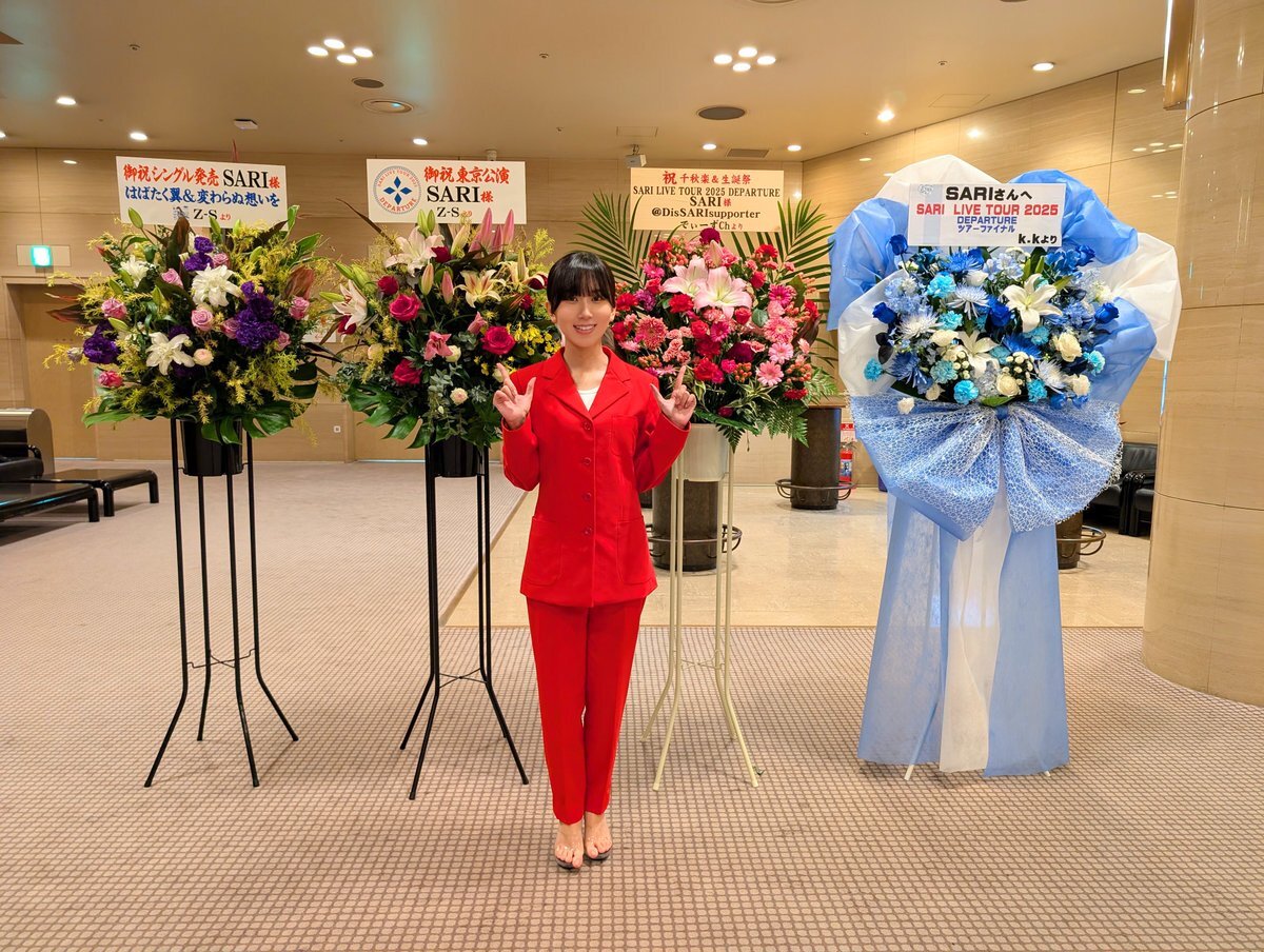 福岡公演にて素敵なお花をいただきました💐 とても癒されました☺️ ありがとうございました✨️ そしてアクリルスタンドが増加されました✌️ 色んな衣装のパターンがあります💃 こちらは東京公演のVIPのお客様に差し上げます🎶 ライブツアーの集大成をライブ配信いたします🧳 お申し込みはこちら👉️ x.com/sari_staff_88/…