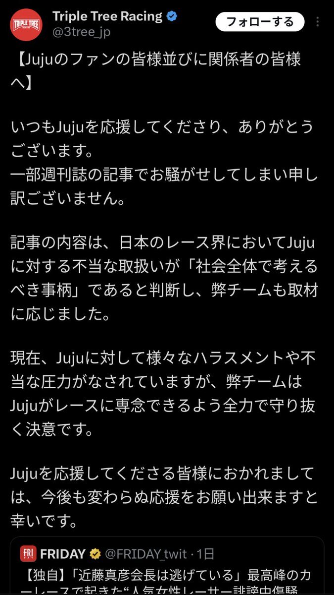 TRIPLE TREE RACINGのこのポスト消した? あんだけ不当な圧力と戦うって姿勢の決意表明みたいなポストだったのに 不当な圧力で削除したんですかね? x.com/3tree_jp/statu… #SFormula pic.x.com/bpgU5O4FA4
