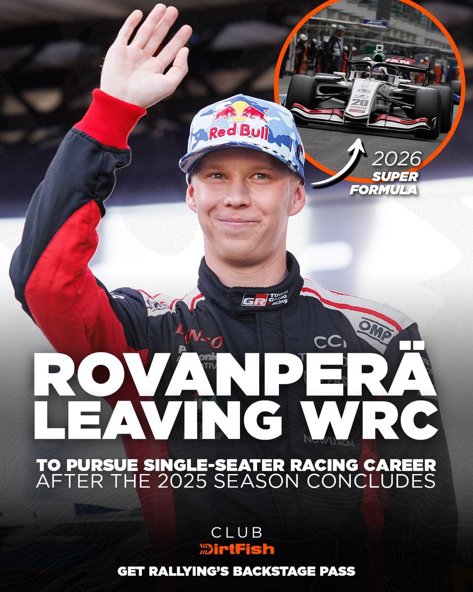 🚨 Red Bull affiliated driver Kalle Rovanpera has announced his retirement from WRC He has decided to switch to open wheel racing starting with Super Formula in 2026!