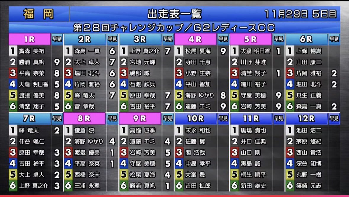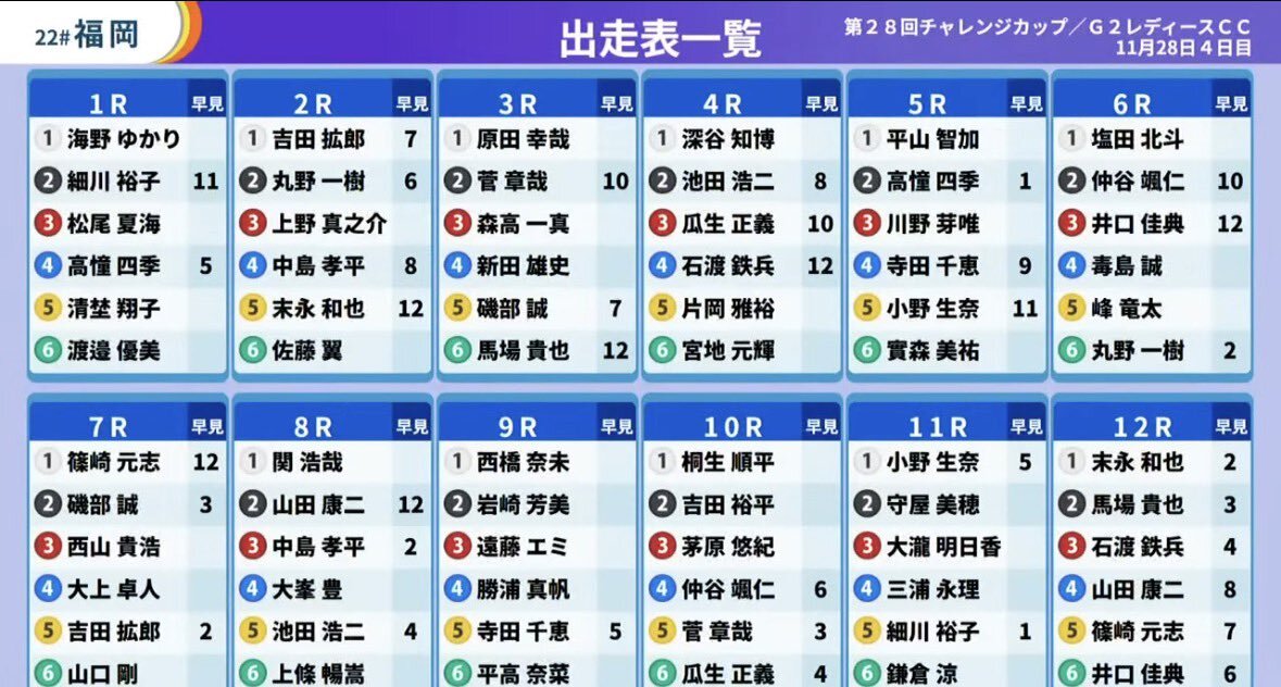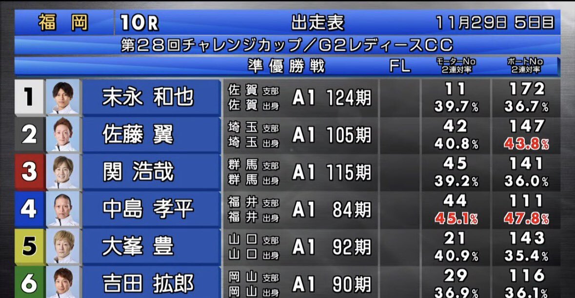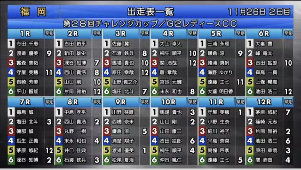 波乱の #SG福岡 4日目が終了。明日の #チャレンジカップ 準優メンバーはこちら。#井口佳典 さんは11R❷号艇頑張ってほしい では #荒前ウオッチ このあと19時から生配信。もちろん #準優予想 と #ジャパンカップ #ゆうネクッチG1全頭解説 今夜はやります。よろしくお願いします🙇🏻 pic.x.com/aHLmW9Iejc