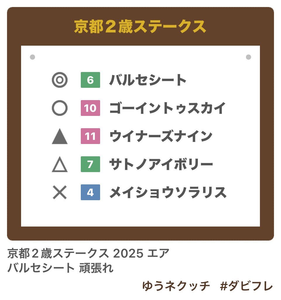 改めておはようございます☀土曜日良い天気ですね。1日よろしくお願いします🙇🏻#SG福岡 は果たして… #京都2歳ステークス はエア。そして現時点での #ジャパンカップ 印はこちら。#ゆうネクッチG1全頭解説 はすでに完成。8時半に #note UP予定してます🗓️#ゆうネクッチサインギャンブル予想 #ダビフレ pic.x.com/7yl0NbQvR1