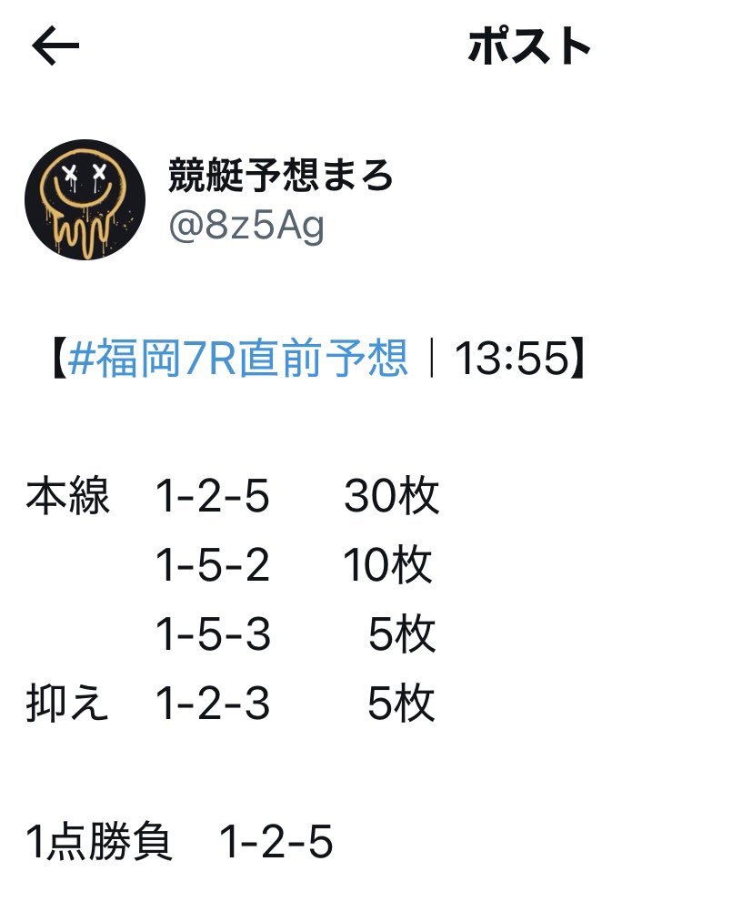 福岡7R🎯1-2-5 7.1倍×3100=22,010円 無料配信にて渾身の1点勝負ピンポイント🤩👏 ❺大上選手もやはり舟足抜群でした‼️ ㊗️㊗️乗られた方々おめでとうございます㊗️㊗️ #ボートレース福岡 #福岡競艇予想 #SG福岡 pic.x.com/Q0AjJ521MG x.com/8z5ag/status/1…