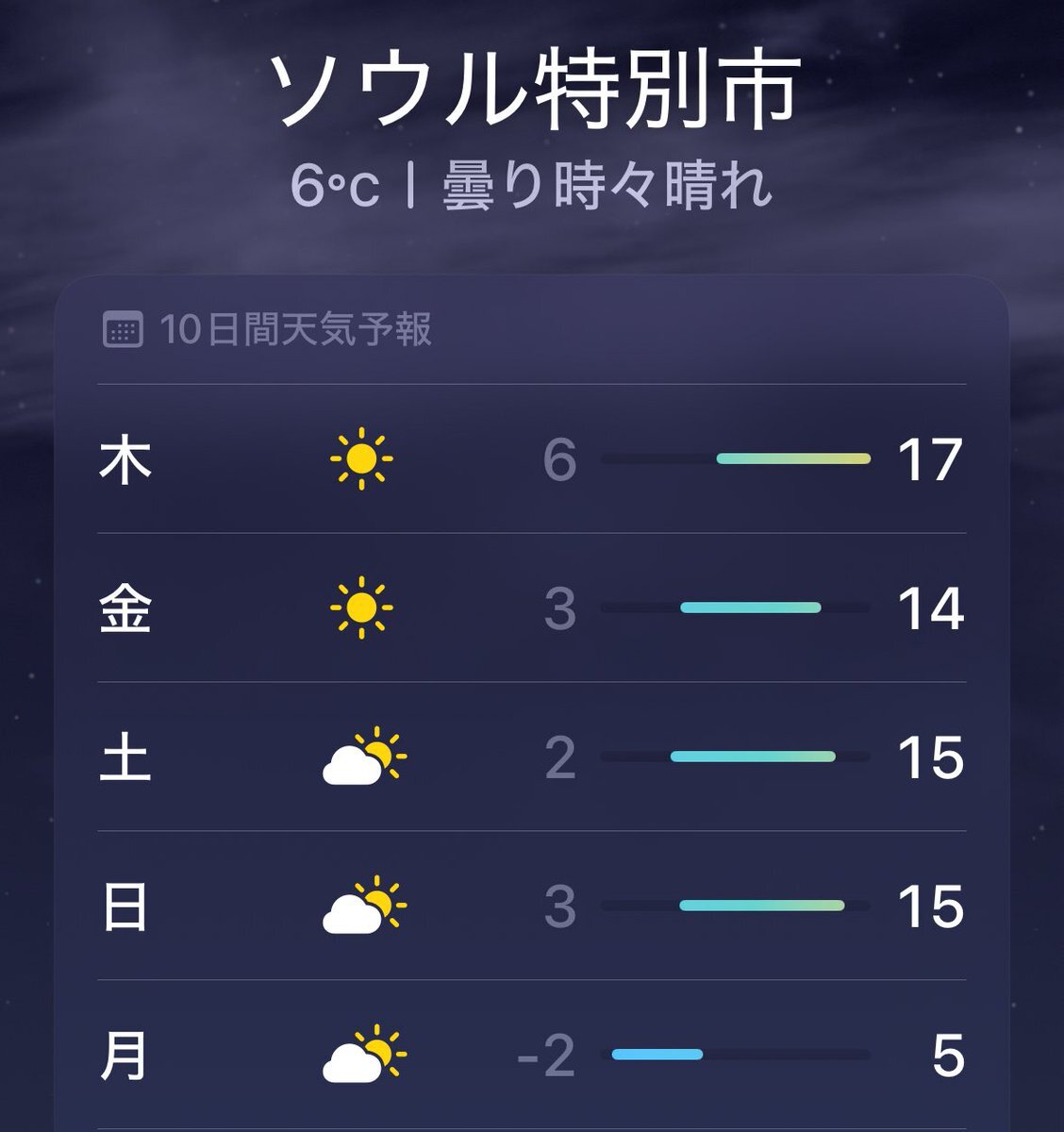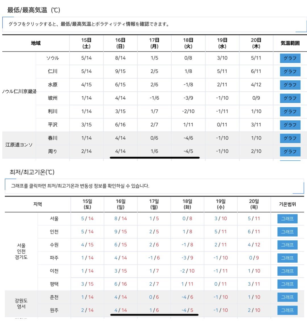 今のところ 週末のソウルは 平年並み程度の寒さで☀️マークも付いていて安心しました😊 翌17日(月)からの寒波が前乗りして来ないことを祈る🙏 #SIKCRETDAY pic.x.com/fQcqcAZRdg