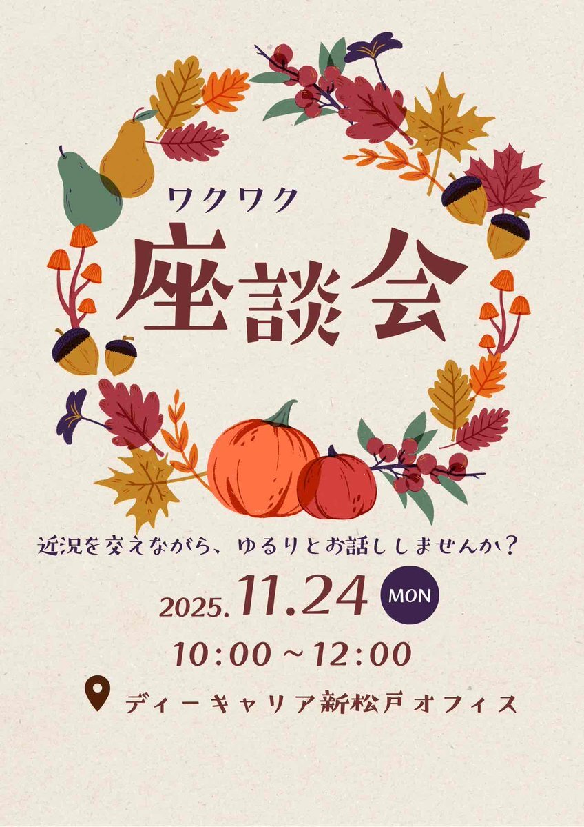 おはようございます🍂 本日は、祝日開所 ワーク・リクルート企画『わくわく座談会』 OB,OGの方に話を聞くチャンス((((oノ´3`)ノ #就労移行支援事業所 #発達障害 #ディーキャリア新松戸 #ASD #ADHD #SLD #精神疾患 #企業公式相互フォロー #松戸 #新松戸 pic.x.com/JpMETnRd1Q