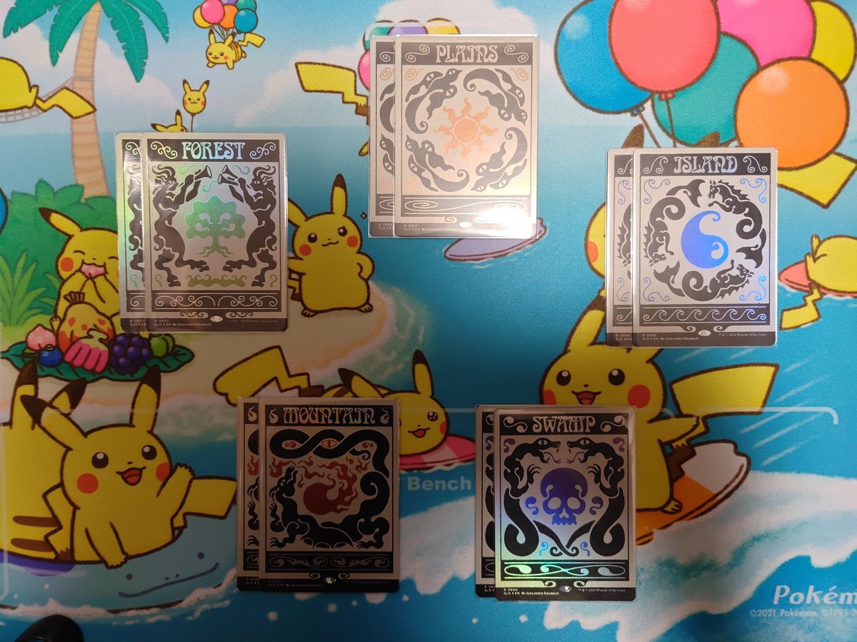 とりあえず全種集めた、島沼以外は通常の構築デッキでも使える枚数は。 ただ☀が馬鹿みたいに値段釣り上げたせいで、おそらく日本国内ではもうクッソ高くて買えない #MTG #SLD pic.x.com/mVGXmvQXmZ