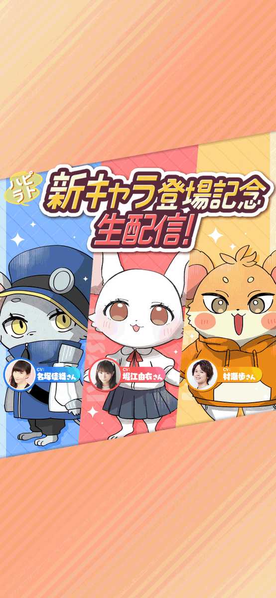 ╭━━━━━━━━━━━━━╮  3つの料理店が 誠にOPEN🎉 ╰━━━━━━v━━━━━━╯ #SOYOGI生配信 見てくれてありがとう🌟 新キャラ達が登場する、新ドラマを公開っ! 🤍ミサキ(CV: #堀江由衣 さん) 💙スミカ(CV: #名塚佳織 さん) 🧡レンジ(CV: #村瀬歩 さん) #梶裕貴 #ハピラト