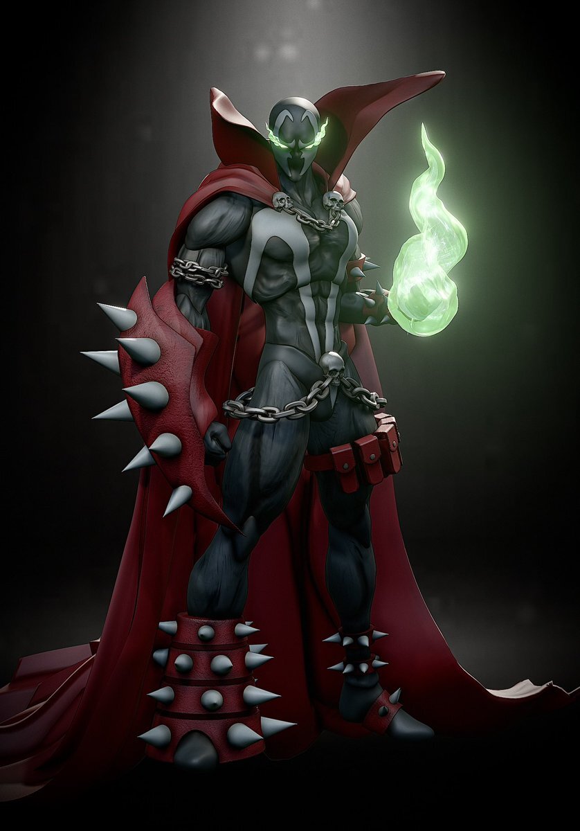 スポーン完成! 実際のフィギュアと同じ分割であえて結合してないので、このまま内部構造をちゃんと作ればアクションフィギュアになっちゃうぜ。 #spawn #nomadsculpt pic.x.com/iJFtHNylc0
