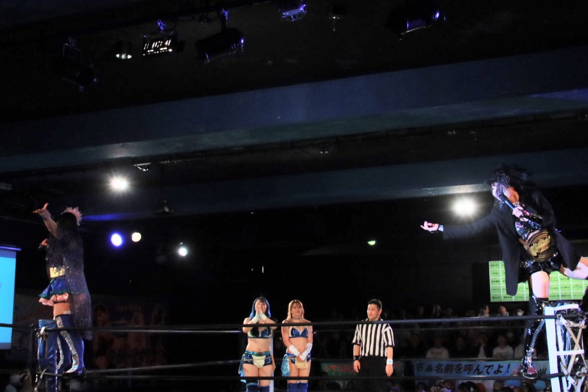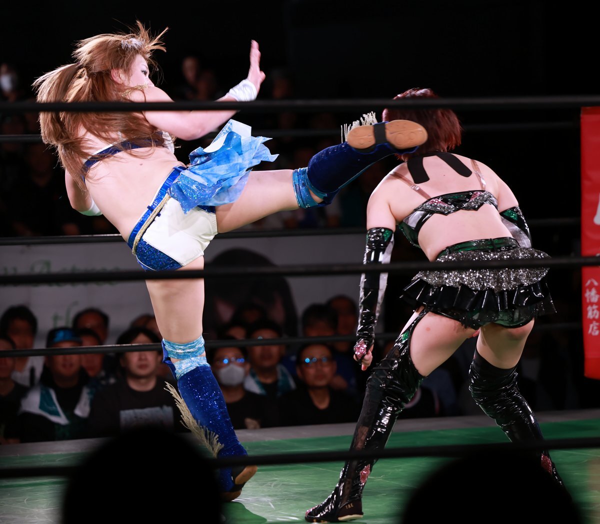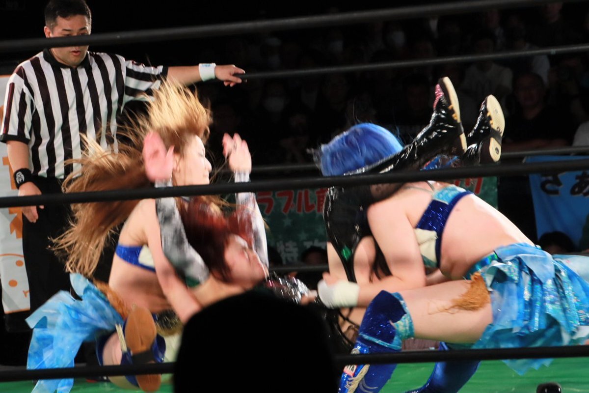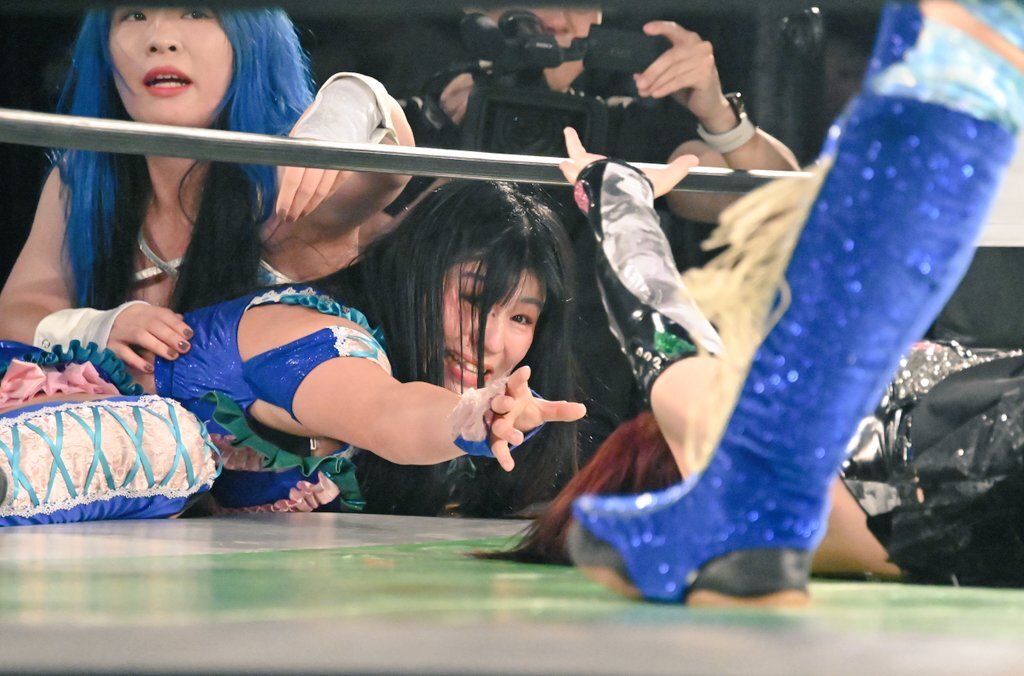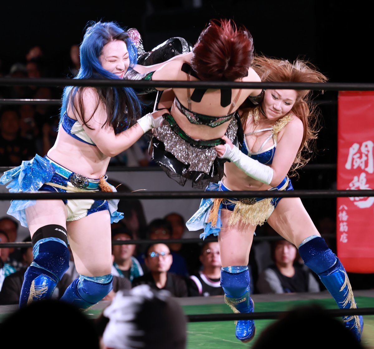 【#乱丸フェスタvol.43 本間多恵引退】 2025年10月13日(月祝 新宿FACE #乱丸フェスタ #救世忍者乱丸 #本間多恵 & #尾崎妹加 (#SPiCEAP vs #世羅りさ & #雪妃真矢 (#AzureRevolution 世羅選手や昨日のカラーズを見ている人は、お尻バット2回目で傷!事情を知ってますが、そこにも鋭いキックが! pic.x.com/NeOb1hTvNf