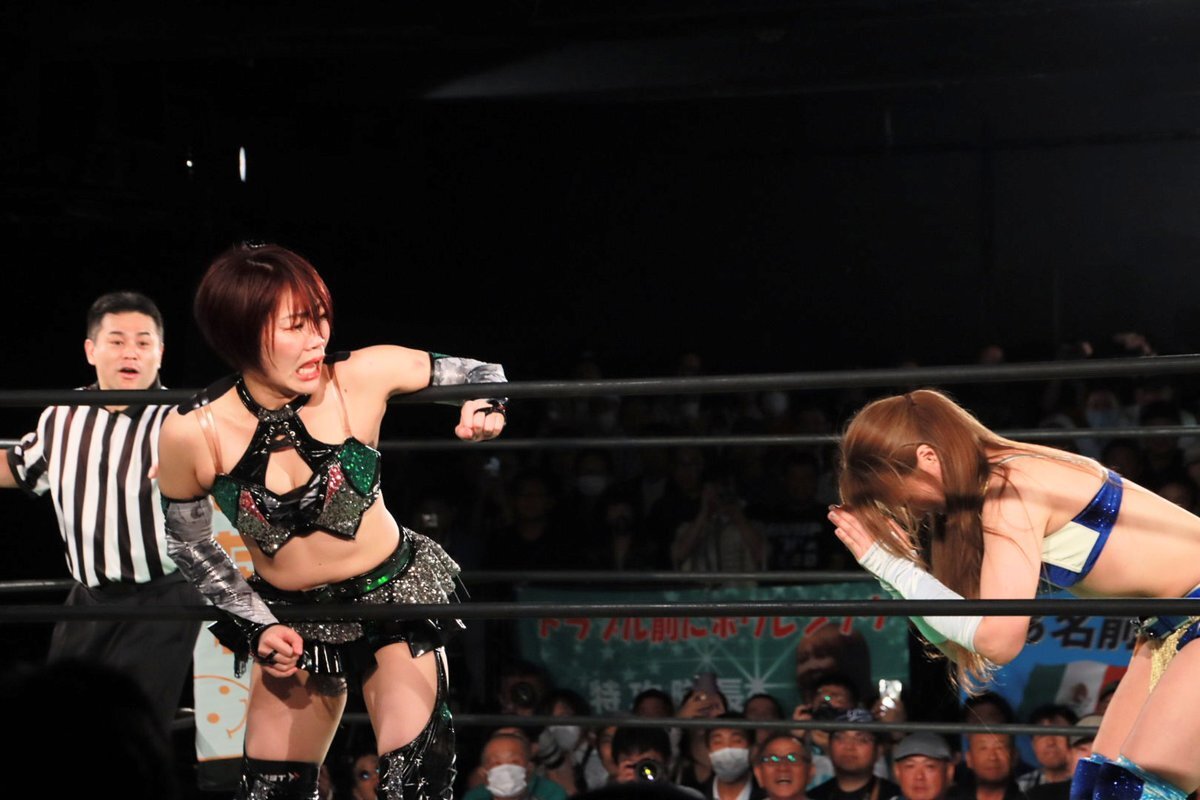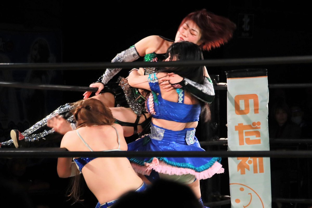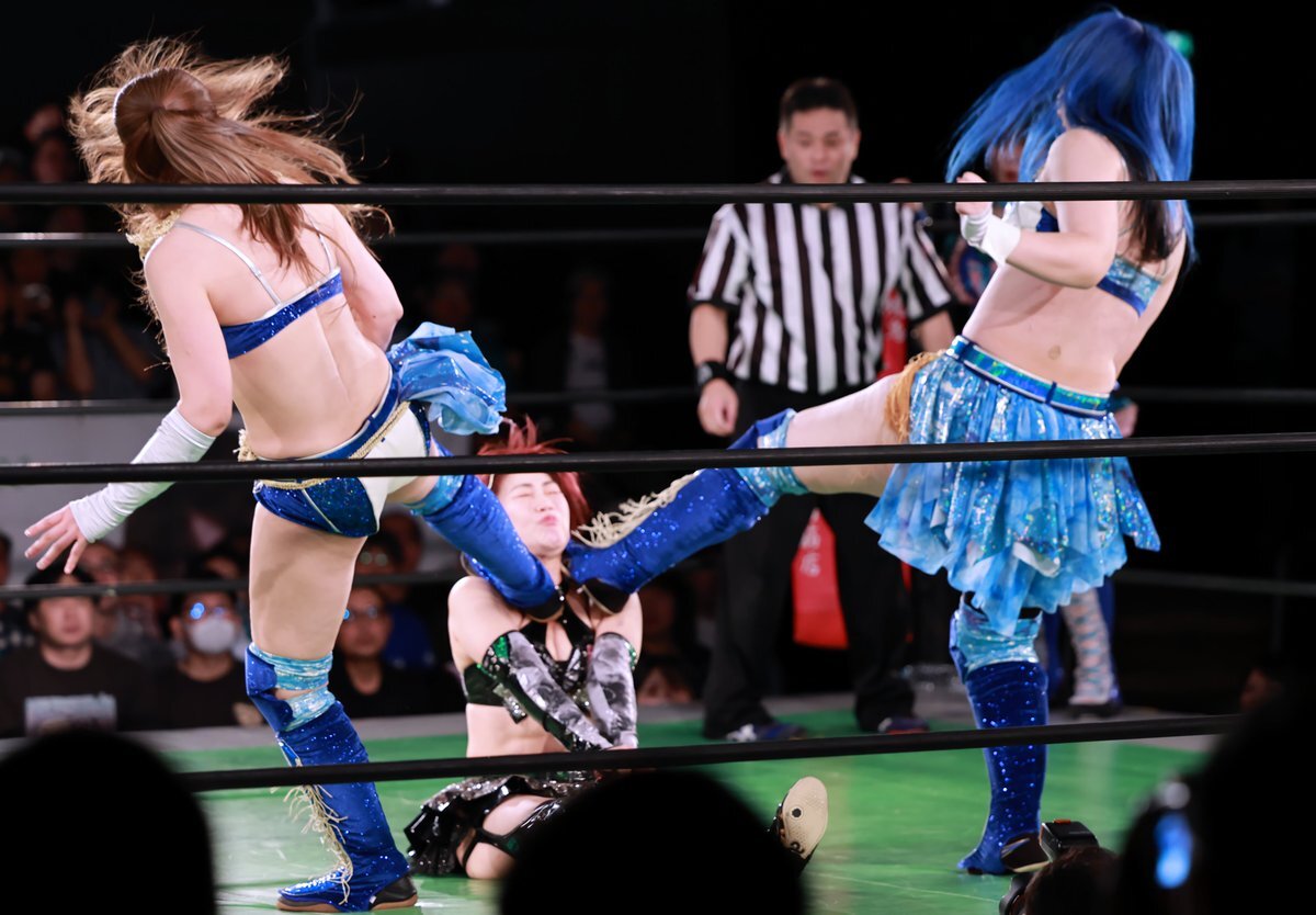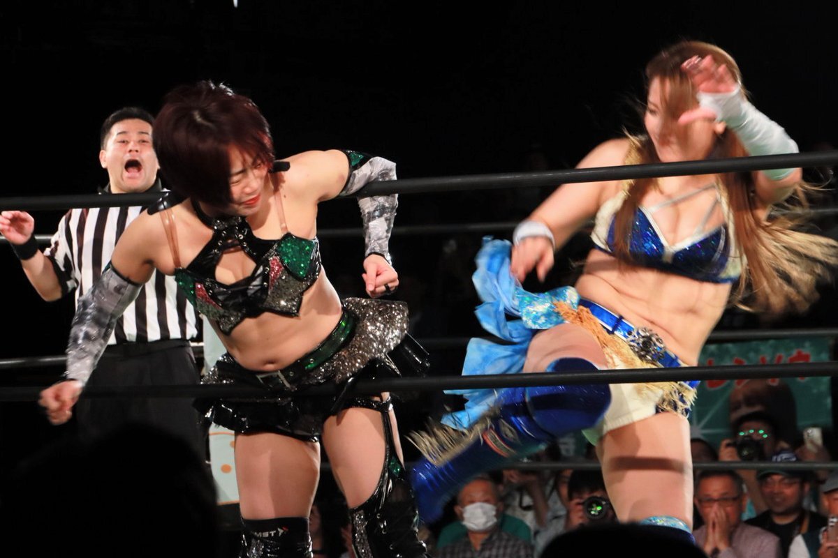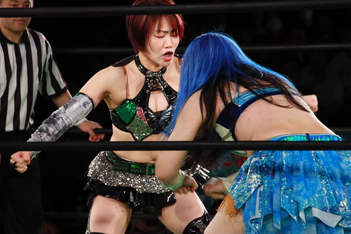 【#乱丸フェスタvol.43 本間多恵引退】 2025年10月13日(月祝 新宿FACE #乱丸フェスタ #救世忍者乱丸 #本間多恵 & #尾崎妹加 (#SPiCEAP vs #世羅りさ & #雪妃真矢 (#AzureRevolution 世羅選手や昨日のカラーズを見ている人は、お尻バット2回目で傷!事情を知ってますが、そこにも鋭いキックが! pic.x.com/NeOb1hTvNf