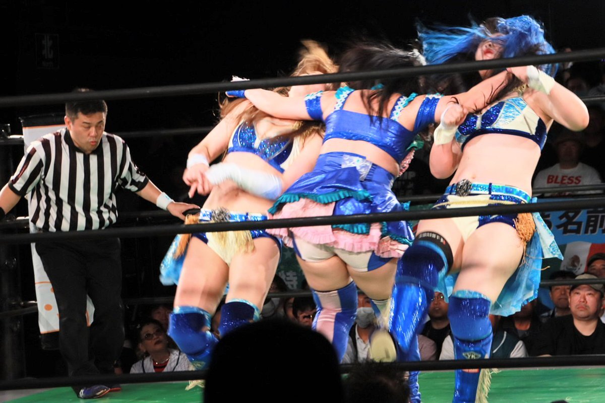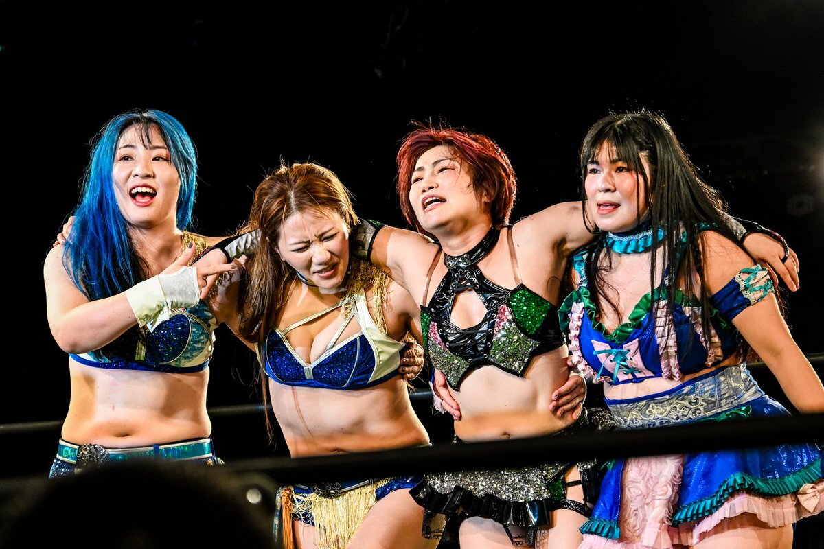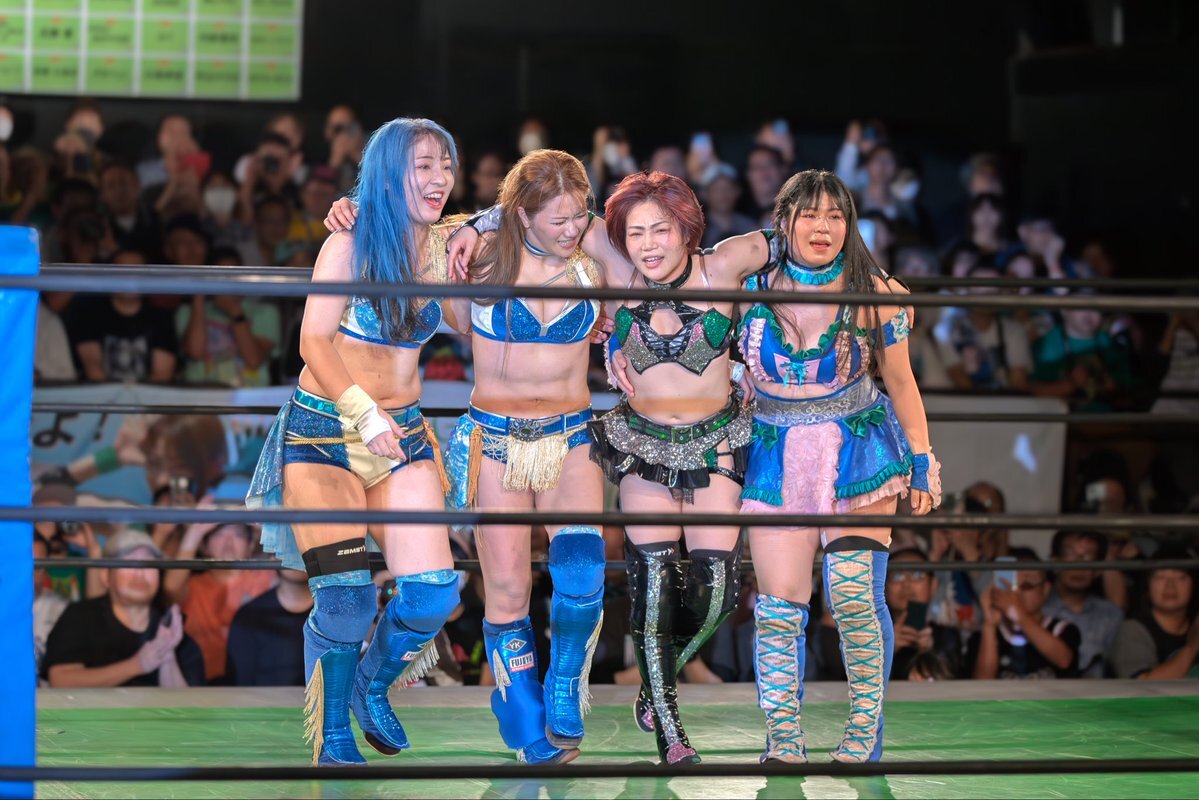 10/13 #乱丸フェスタ 第2試合 #アジュレボ vs #SPiCEAP この闘いが最後に 見れるなんて。 最後はノーサイドで 4人並んで😂 世羅りさ選手 雪妃真矢選手 本間多恵選手 尾崎妹加選手 pic.x.com/zUApTm8Kd8