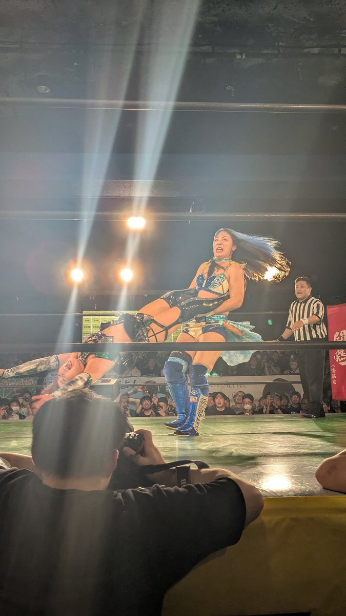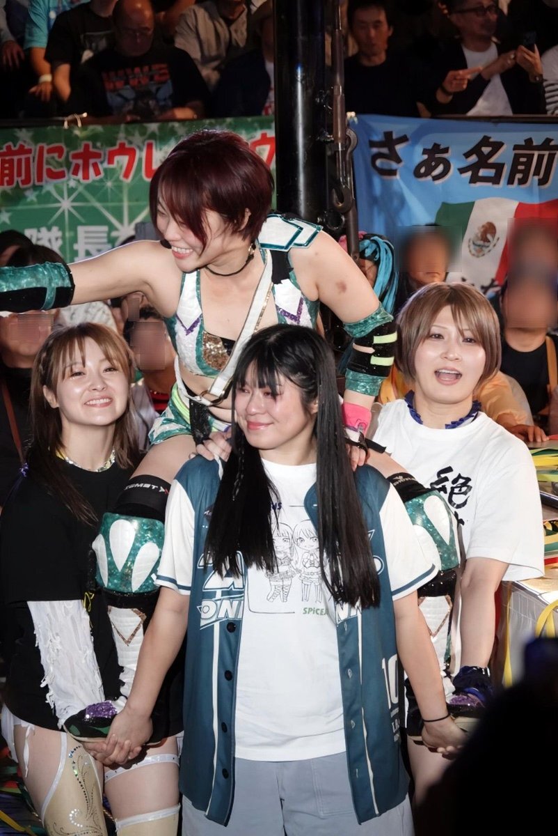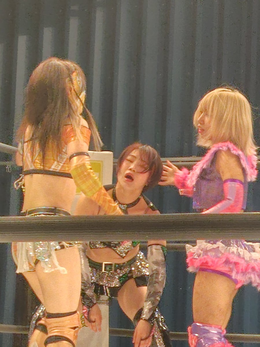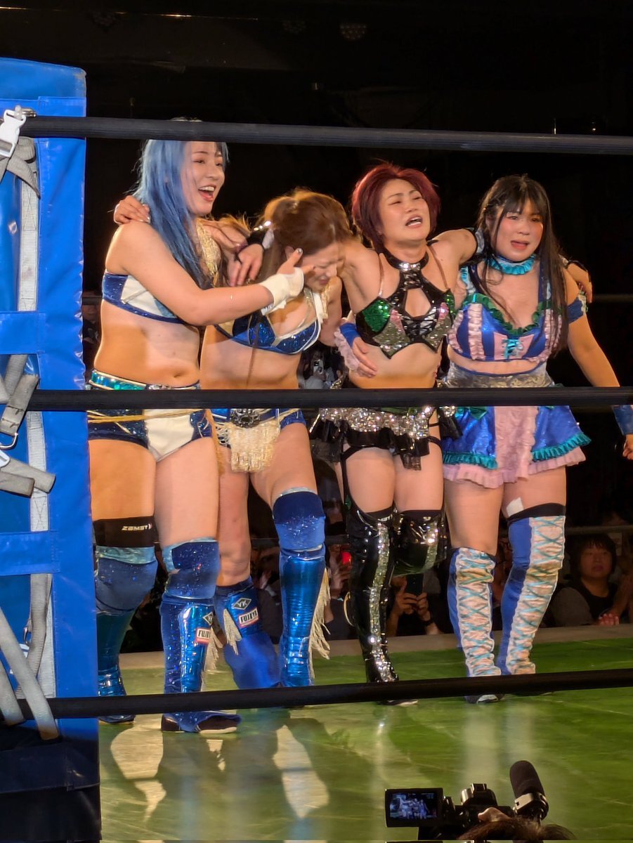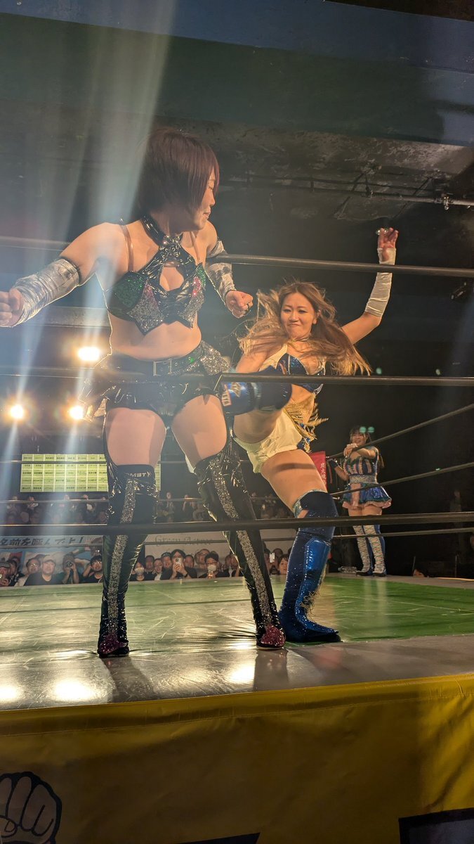 #SPiCEAP #本間多恵 #尾崎妹加 #炎華 #咲蘭 #DUAL_SHOCK 良き試合でした。みんな瞳が潤んでいましたね。😂😭参戦して良かった。 最後のGAMIさんの粋な計らいも🙆❤️👏👍👌素敵。ありがとうございました。 pic.x.com/JQyhvm4HmQ