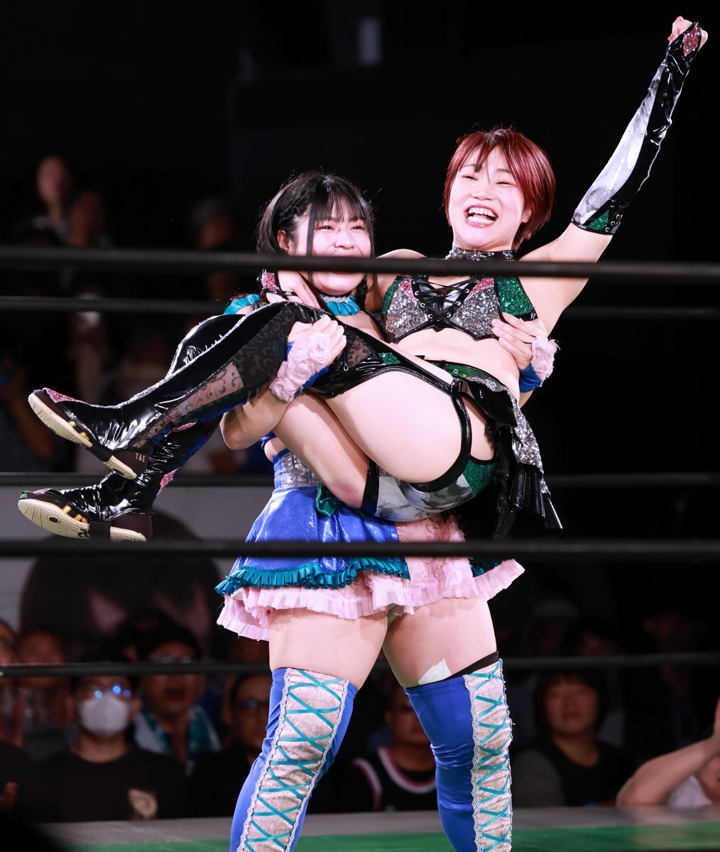 最後に #アジュレボ vs #SPiCEAP が出来て凄く嬉しかった💙💙💚💙 みんなに愛されて笑顔で引退していく多恵の姿がとても素敵でした🥹💖 多恵! 私をパートナーに選んでくれてありがとう!! 大好きだよ!!!!! これからもずーーーっとよろしく🥰🥰 #乱丸フェスタ #本間多恵引退