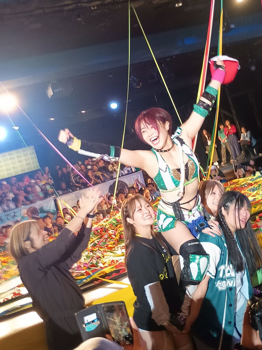 いよいよ…ほんまの最後か… 多恵とは沢山一緒にベルトを巻いてきた。 多恵とじゃなきゃ叶えられなかったこと沢山あるよ。 オリジナル入場曲もそう、あの曲ほんまに大好き。 多恵は沢山の人に愛されとる。 みんな多恵が大好きだで。 あ…ダメ…これ書いてたら涙が😭 #乱丸フェスタ #本間多恵引退 の日
