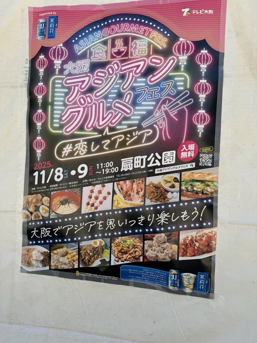 『#大阪アジアングルメフェス 2025 supported by 茉莉花<ジャスミン茶割・JJ>』 11月8日・9日に #扇町公園 で開催✨ 出店者情報を公開いたしました🍽 tv-osaka.co.jp/event/ag-fes/s… 美味しいメニューがいっぱい♪ みなさまのご来場お待ちしております☺ #テレビ大阪