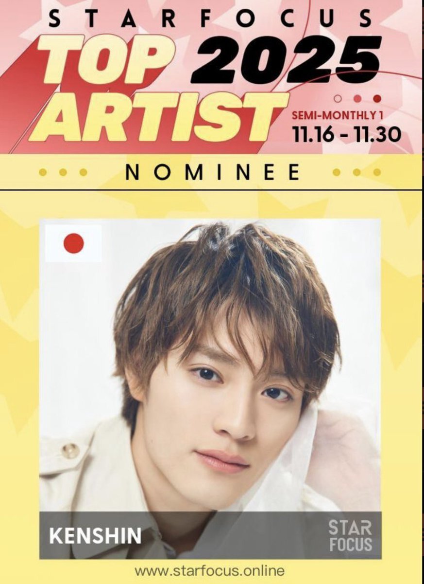 #KENSHIN is participating in - Star Focus Top Artist in Asia Pacific, Please vote to make a difference. おはようございます 今朝は7位 🗓️November 16-30 (BKK) 🔗Voting Link: starfocus.online/main/973?s=e3P… #StarFocus #STARFOCUSTOPARTIST #KENSHIN