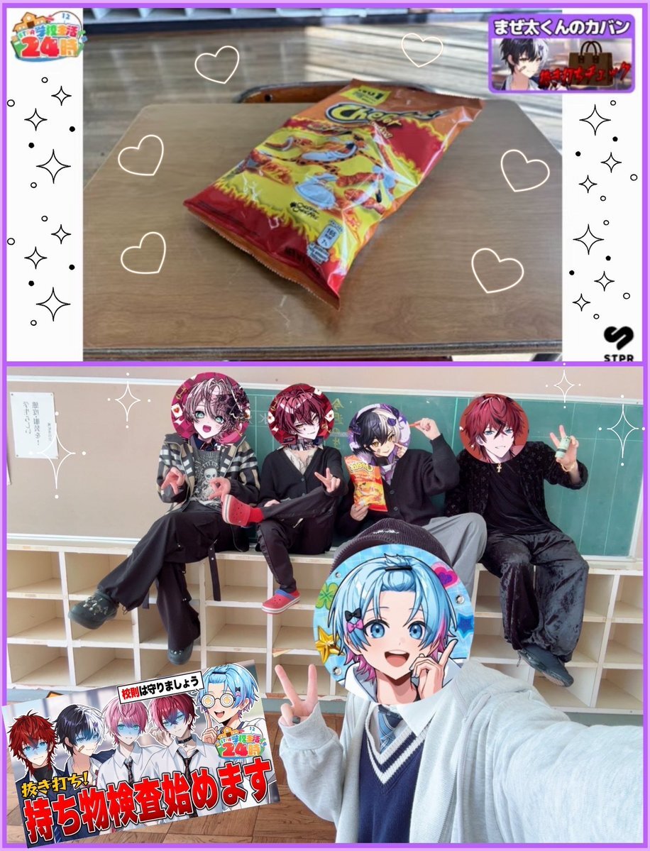 #まぜ太はよみろ #まぜ太くん #STPR学校24時 _人人人人人人人人_ > 抜き打ち! < > ♡持ち物検査♡ <  ̄ Y^Y^Y^Y^Y^Y^  ̄ ずっと自撮りしてるまぜ太くんが可愛かったぁ😆💜 色んなお話も聞けて聞けて楽しかったよ (*´艸`)💜 チートスが出てきたときは笑っちゃったけどw🤭💜 pic.x.com/hHY4e6wj99