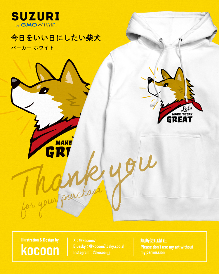 つくったアイテムが売れたよ🎉 今日をいい日にしたい柴犬 パーカーの ご購入ありがとうございます! suzuri.jp/kocoon/1898447… 新作を選んでもらって嬉しいです🥳 もう12月!今日だけじゃなく いい年末にしたいですね🐕 #SUZURIのブラックフライデー 開催中🔥 (12/8(月)23:59まで) #suzuri #柴犬 pic.x.com/IxibDDnaf3