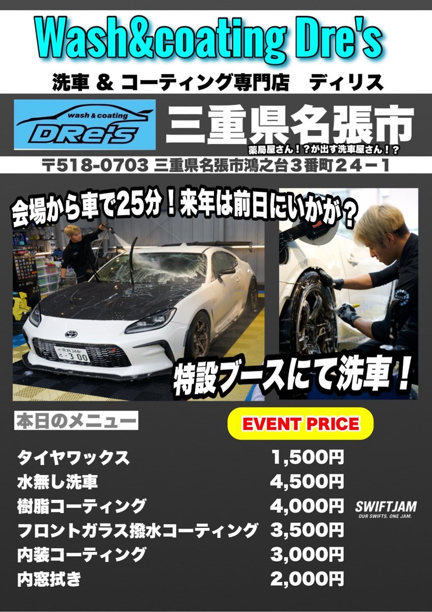 -ˏˋ #SWIFTJAM2025 ˎˊ˗ ┅┅┅┅┅┅┅┅┅┅┅┅ 📢出店企業様 \ 🔥当日愛車を綺麗にしませんか?🔥/ ┅┅┅┅┅┅┅┅┅┅┅┅ ⧈Wash&coating Dre's 様 年1のBIG EVENT🎉 イベント中は綺麗でいたい…そこの貴方✨ #スイジャム #SWIFTJAM #SWIFTJAM2025 #SWIFTJAM2025で会いましょう pic.x.com/Kp1iiOatw0