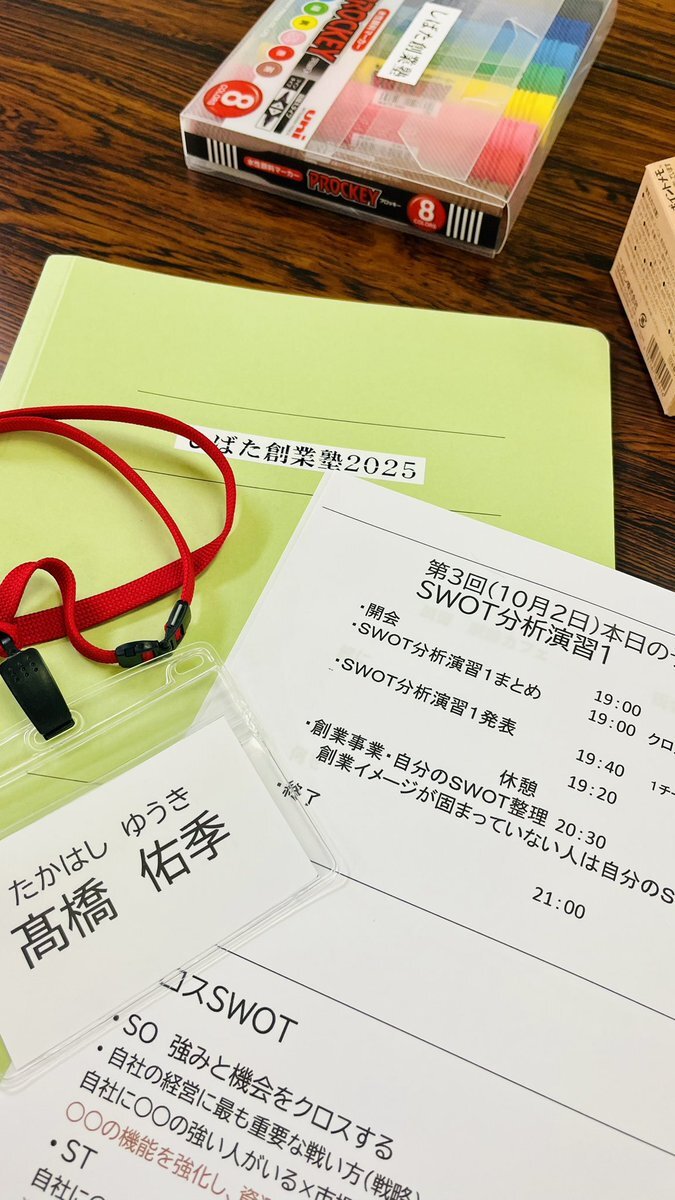 手帳コーチ養成講座が終わった直後から参加し始めた地元自治体主催の創業塾 全12回(毎週木曜)で総額3000円だしやってみるか!っていう軽いノリだったけど、予想以上に勉強になるし、他のメンバーとも刺激し合える このまま続けてみよう☺️✨ #創業塾 #swot分析 pic.x.com/aykuOO4RA3