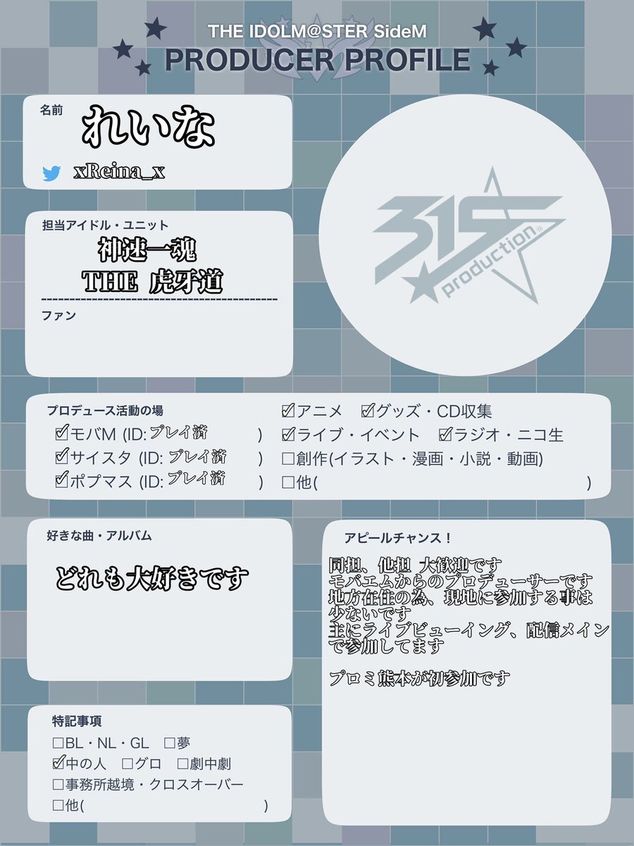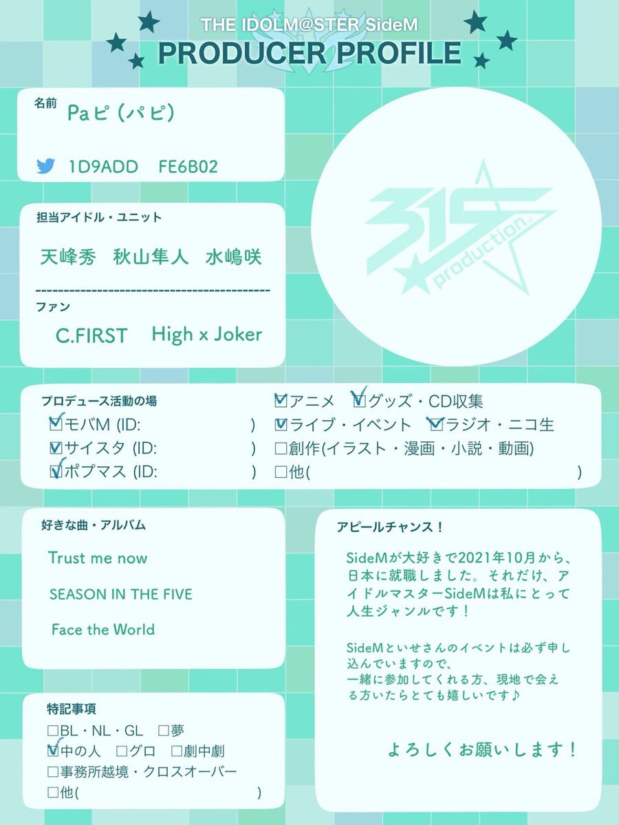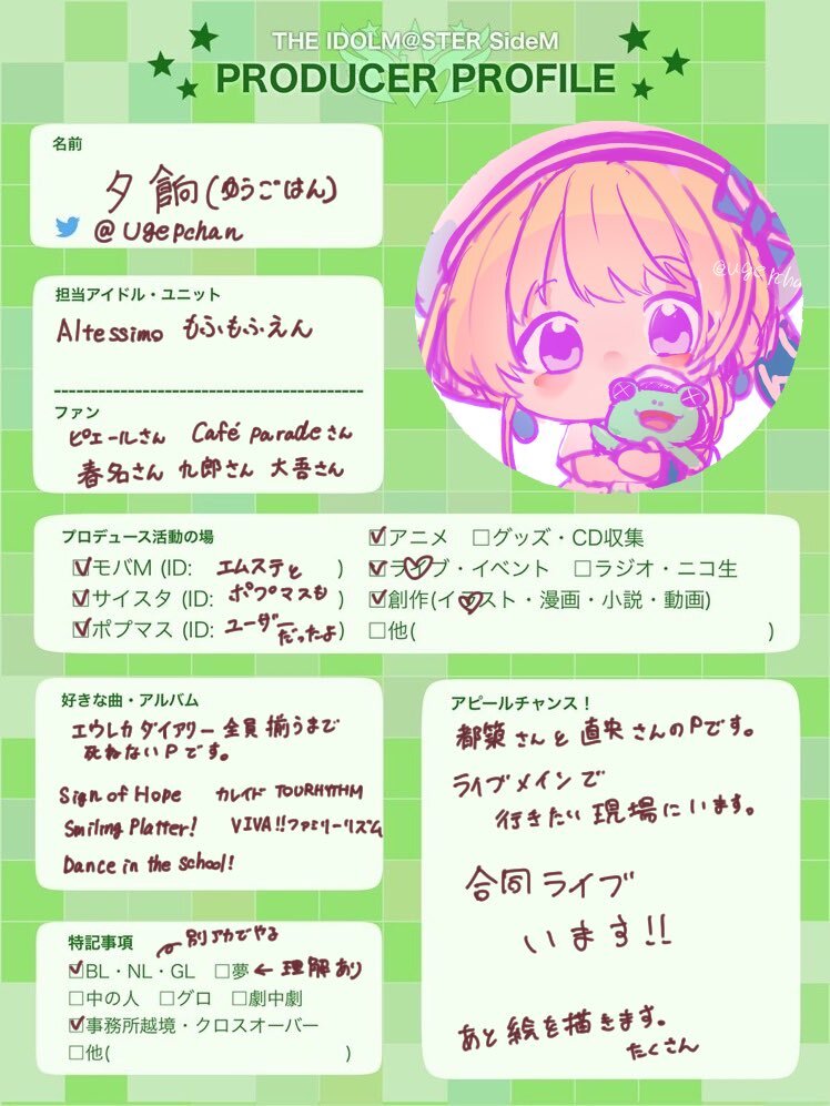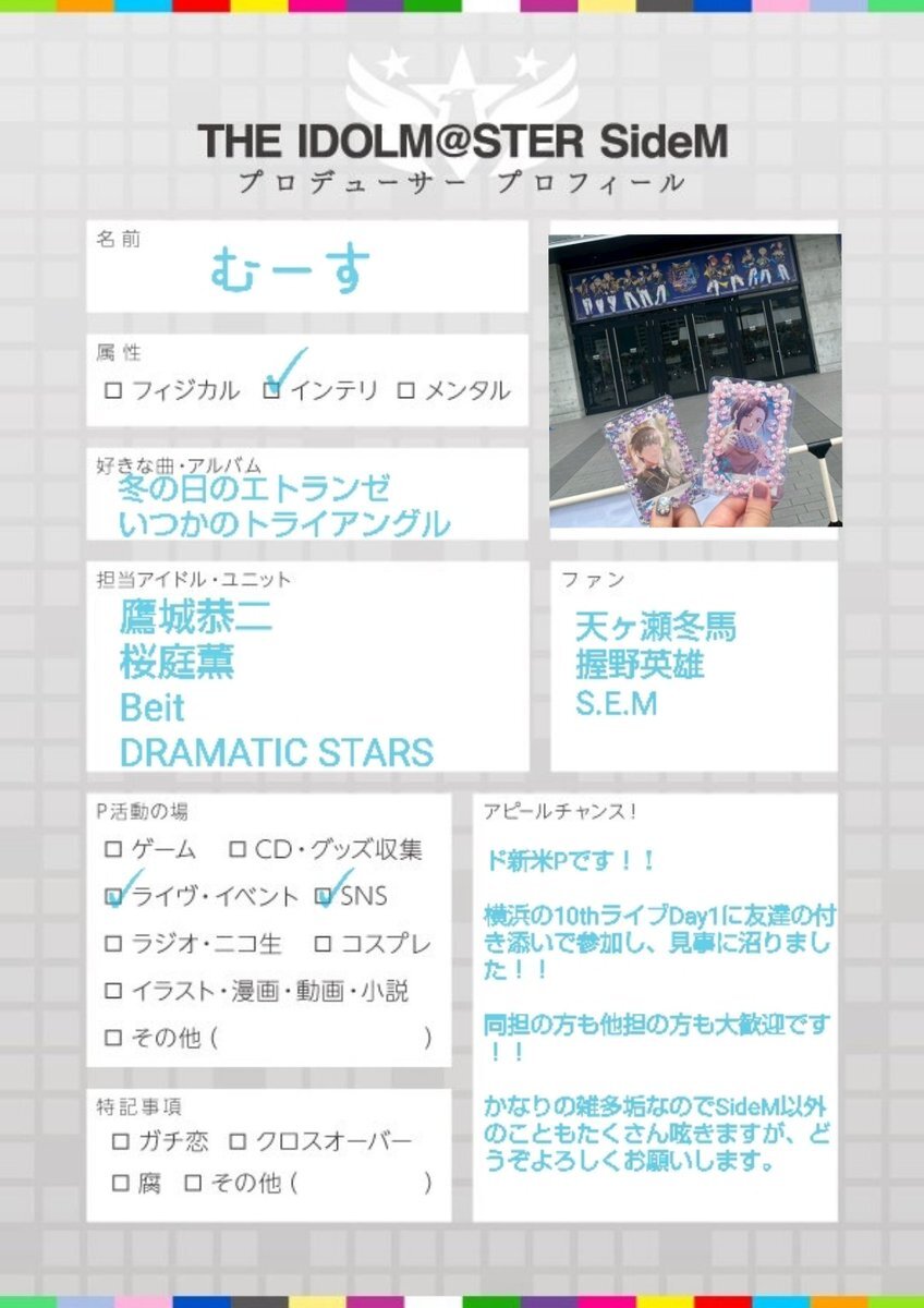 @1 合同ライブに向けてお友達探し(>ᴗ<)⭐️ 両日参戦します‼️ 反応は🔗先までお願いします🙇‍♀️ #SideM好きな人と繋がりたい #SideM好きさんと繋がりたい #MマスPプロフィール x.com/fe6b02/status/…