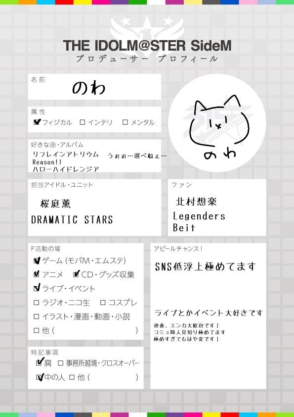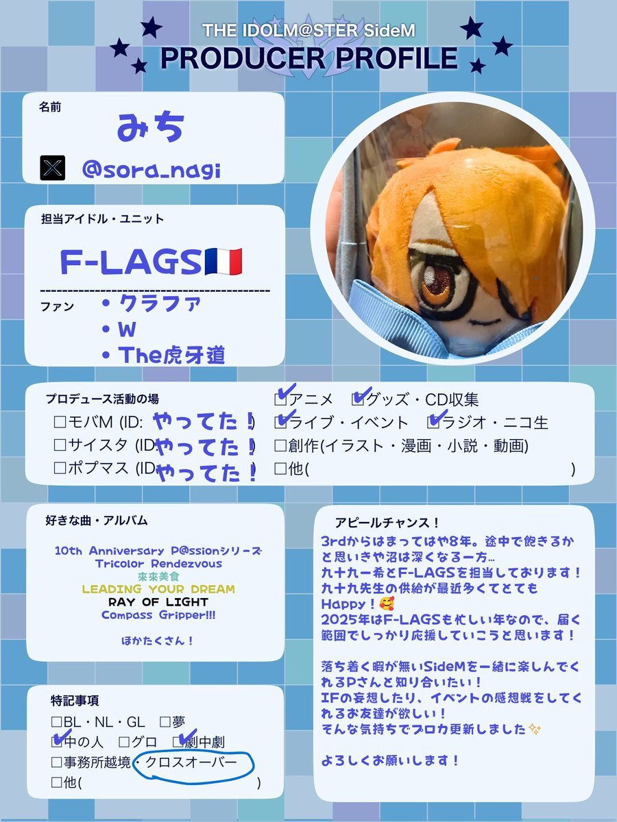 理由あってホビアニからSideMへ! まだP歴半年ほどの新人ですがSideM好きな方と沢山交流したいです! いいねしてくれた方お迎えいきます! #MマスPプロフィール #SideM好きさんと繋がりたい #SideM好きな人と繋がりたい pic.x.com/Fk9yz4mYZN