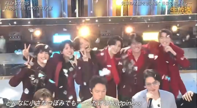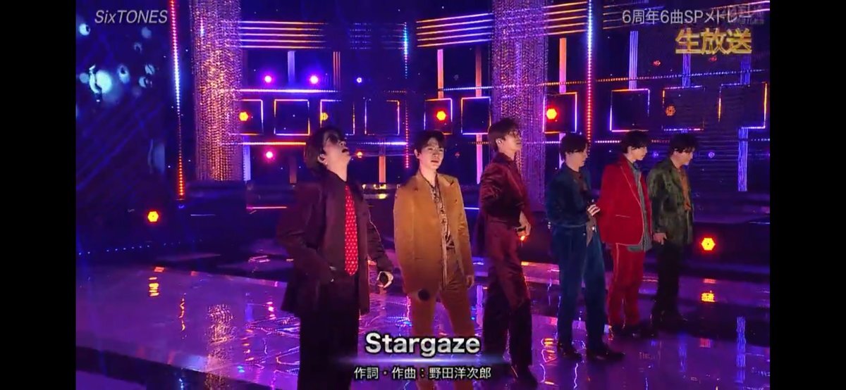 Stargazeの時歌詞のフォント変わってる!!芸が細かい!! こっからの演出も過去映像バックに歌唱最高だった ありがとう日テレ!! #ベストアーティスト2025 #SixTONES_6周年6曲メドレー