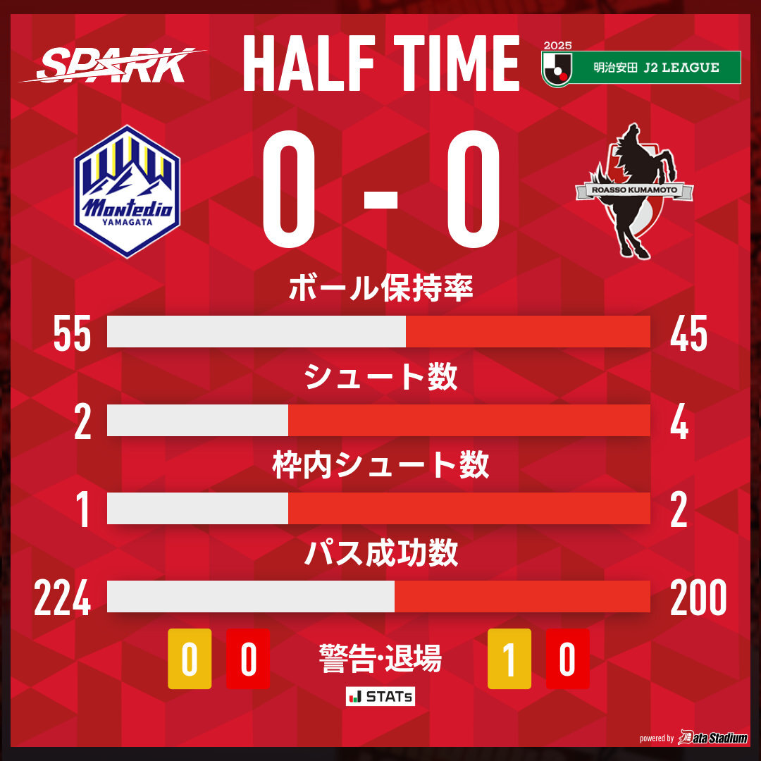 前半終了 🏆明治安田J2リーグ 第33節 #モンテディオ山形 0-0 #ロアッソ熊本 #SPARK pic.x.com/raUtjbLam6