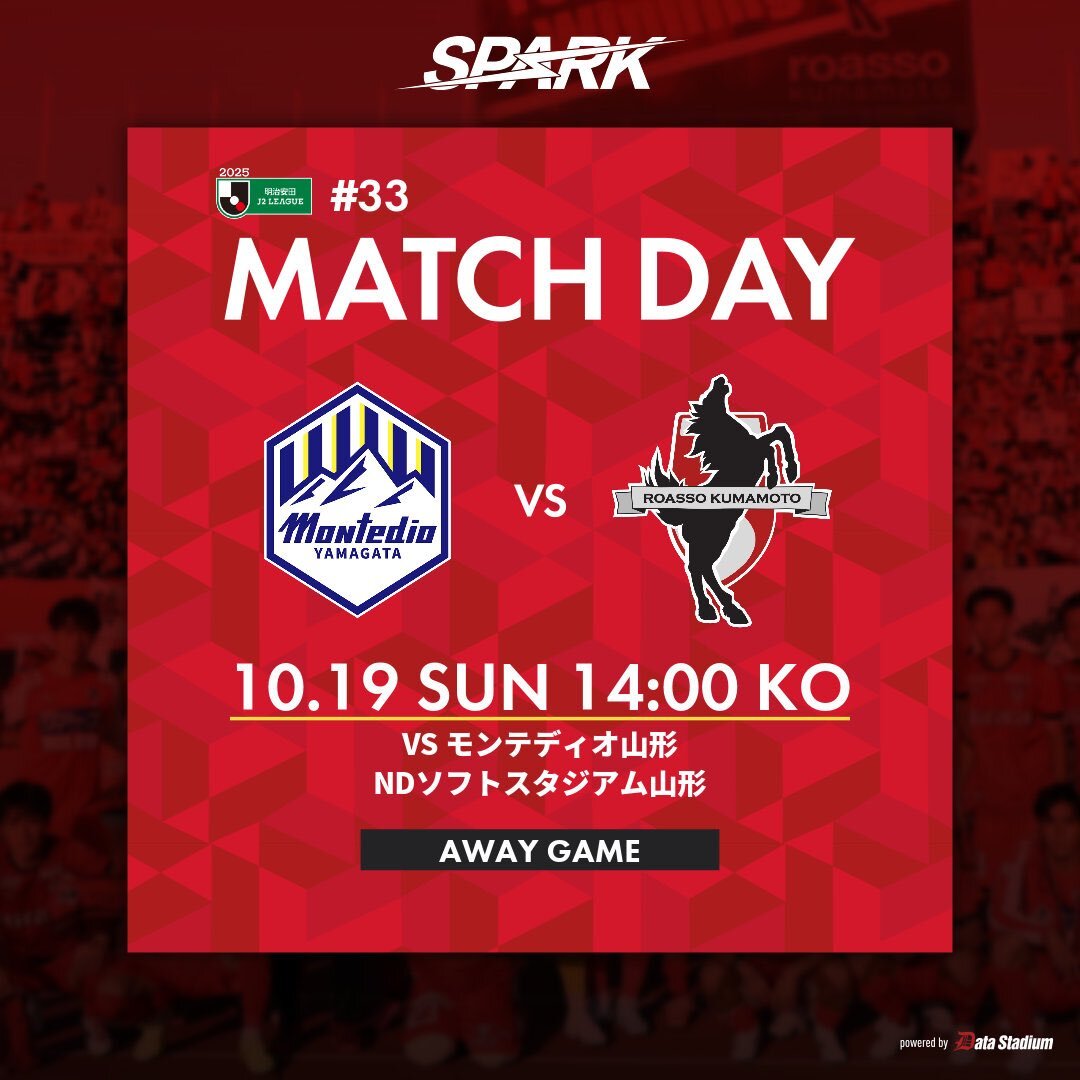 本日はMATCH DAY🐴⚽ 🏆明治安田J2リーグ 第33節 🆚#モンテディオ山形 🗓 10/19 14:00キックオフ 🏟#NDソフトスタジアム山形 #スポーツくじWINNER がクラブ強化に! #PR 特設サイト▶️toto-dream.com/landing/winner… #ロアッソ熊本 #SPARK pic.x.com/PvkC6NacNz