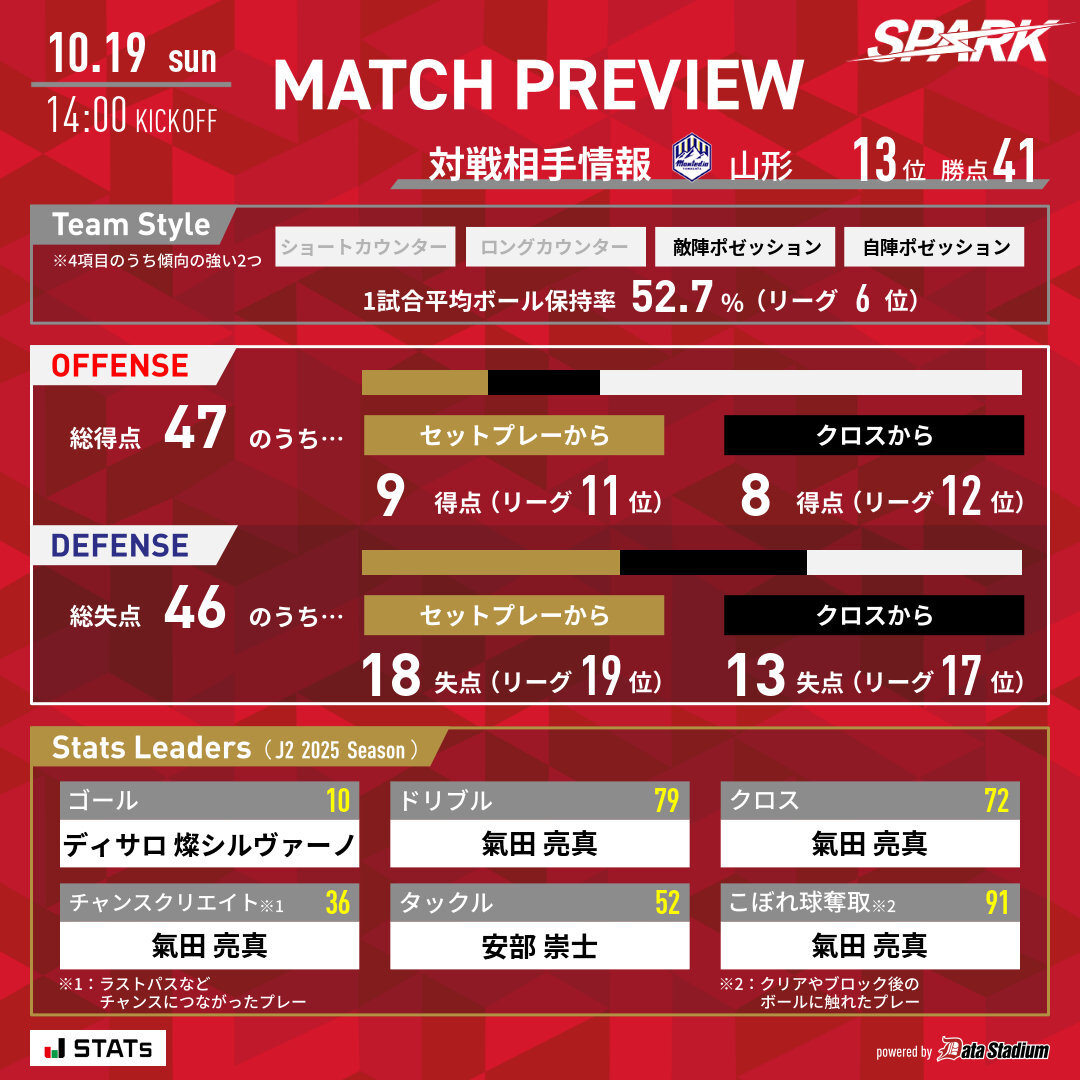 明治安田J2リーグ 第33節 2025年10月19日(日)14:00KO NDソフトスタジアム山形 モンテディオ山形 vs ロアッソ熊本 【今節のメンバーのチャント】 youtube.com/playlist?list=… SPARK!!!!!!!! #ロアッソ熊本 #モンテディオ山形 #山形熊本 #チャント #SPARK