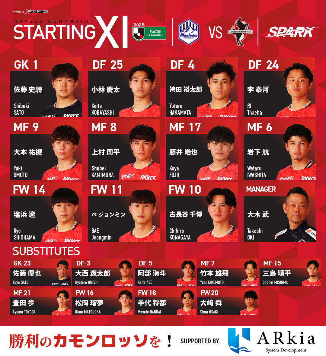 🏆明治安田J2リーグ 第33節 🆚#モンテディオ山形 🗓 10/19 14:00キックオフ 🏟#NDソフトスタジアム山形 #ロアッソ熊本 スターティングラインアップ #スポーツくじWINNER がクラブ強化に! #PR 特設サイト▶️toto-dream.com/landing/winner… #DAZN 加入&視聴はこちら 👉 prf.hn/click/camref:1… #SPARK pic.x.com/rC8VyWLMb7