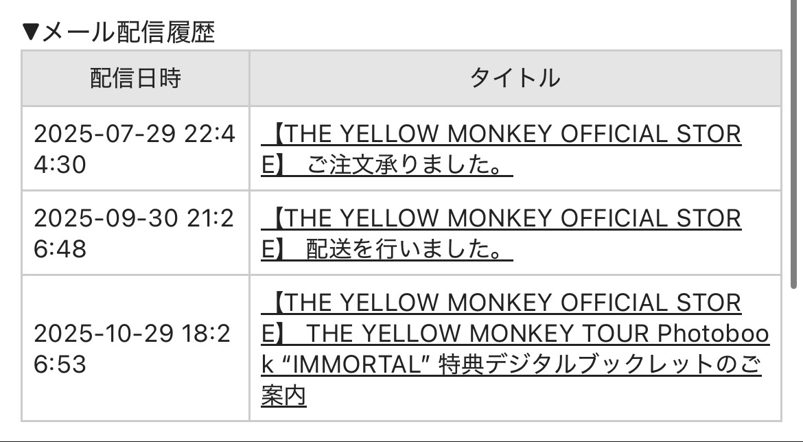 THE YELLOW MONKEY TOUR Photobook “IMMORTAL” 特典デジタルブックレット受け取れていない方へ! メールが受信できていなくても、ストアのマイページ→購入履歴からメールが読めます。年内までのダウンロード期限があるので気をつけてください🥹 #THEYELLOWMONKEY #Sparkleの惑星X #横山マサト さん pic.x.com/Wu8sTl4iT4