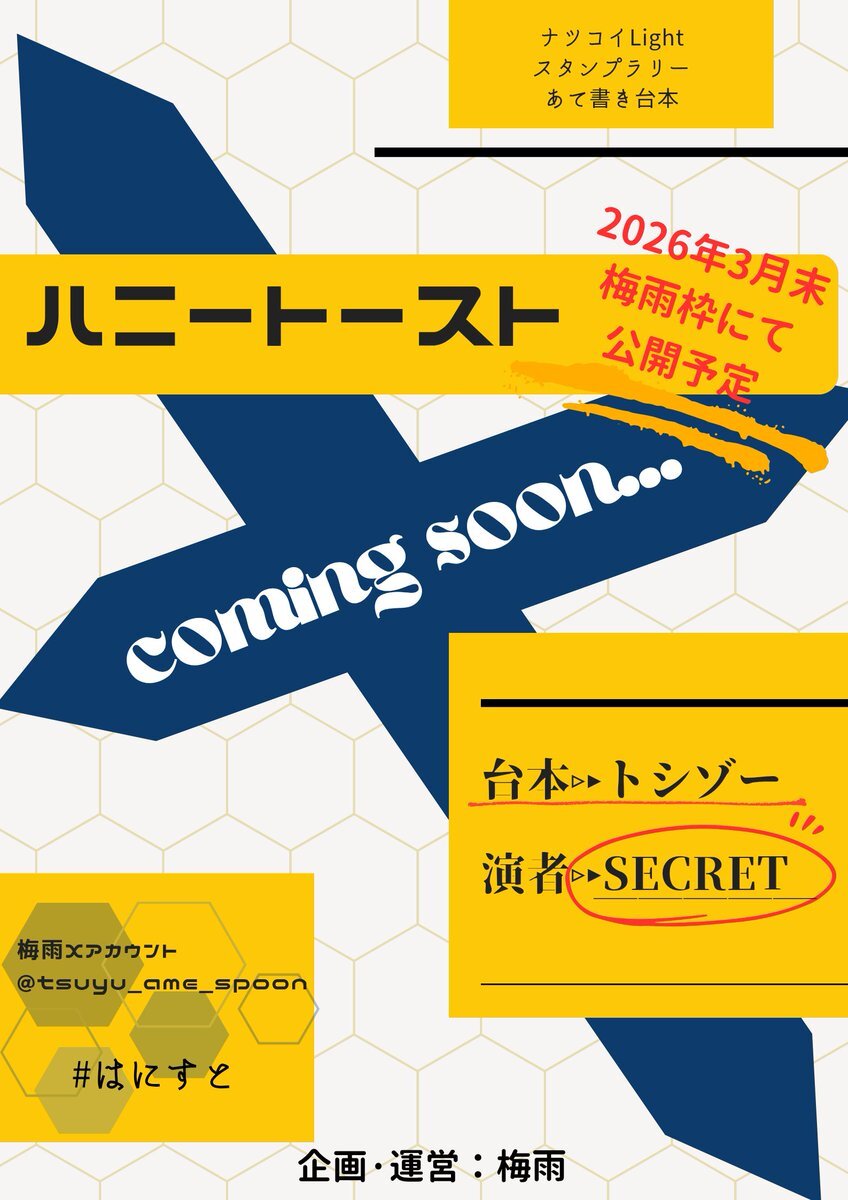 -`📢 梅雨、初企画やります! ナツコイLightあて書き作品 🍯 ハニートースト  ̄ ̄ ̄ ̄ ̄ ̄ ̄ ̄ ̄꒦꒷ 現在鋭意制作中… 続報を待て!🐝࿆ #Spoon #Spoon声劇 #はにすと pic.x.com/XkgzLEWbMj