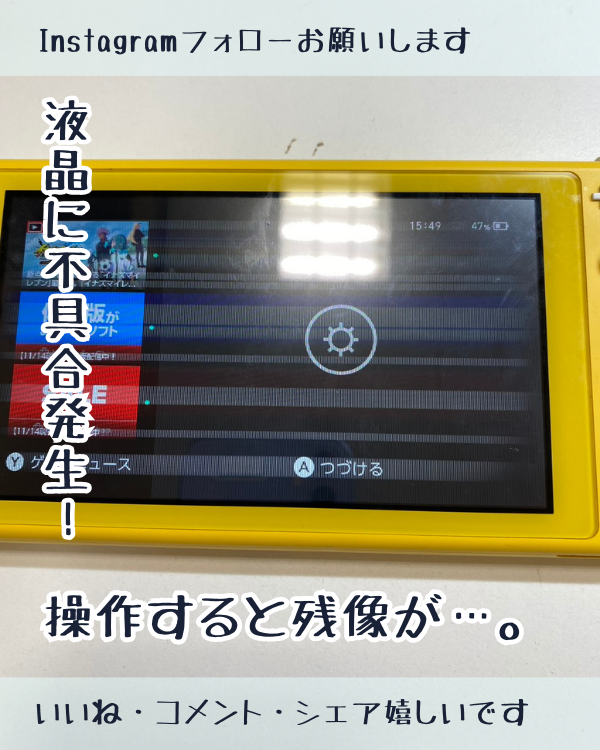 操作すると液晶に残像が…。スイッチの修理もすぐ修理します! smapple-kagoshima.com/archives/58307 #Switch修理 #iPhone修理 #スマップル鹿児島店 890-0053 鹿児島県鹿児島市中央町22-16アエールプラザ2階 スマップル鹿児島店 099-230-0404 インスタグラムもよろしくお願いします! instagram.com/smapple_kagosh… pic.x.com/XdRXyVAgf8
