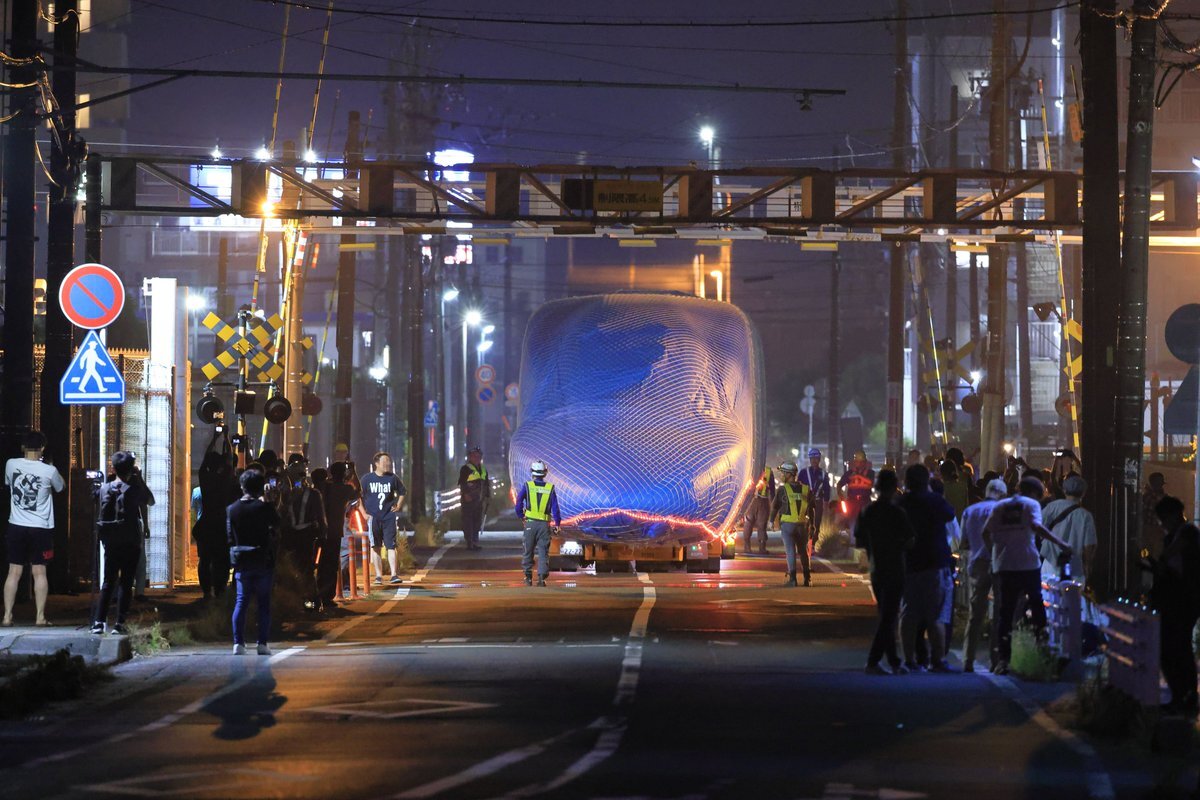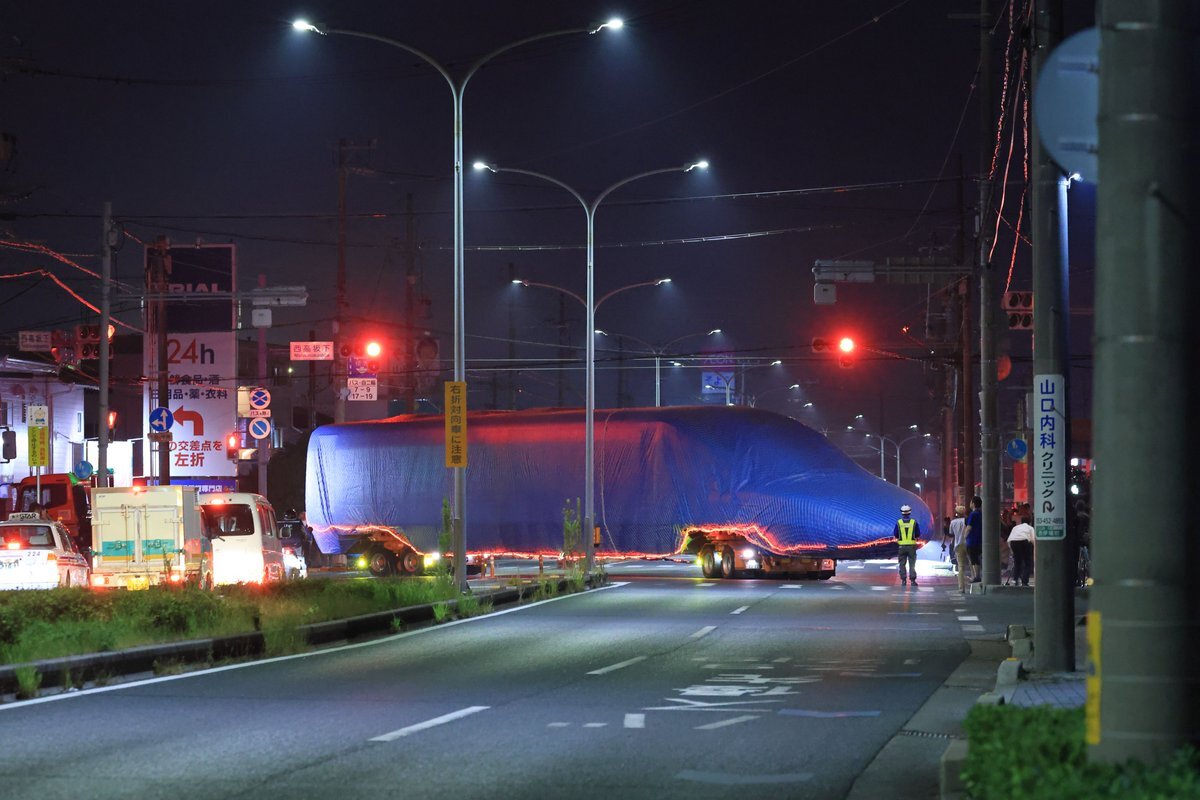 2025/8/7(木) 2月に引退したドクターイエローT4編成の1号車が、山口県の笠戸へ里帰りするとの事で、JR東海浜松工場より深夜に陸送されていきました。 非常に多くの方々に見送られ、その人気ぶりを感じました。 初日の静岡県エリアのみ見学。 おつかれさまでした。 #ドクターイエロー #T4編成 #浜松 pic.x.com/pbeqq3jhm7