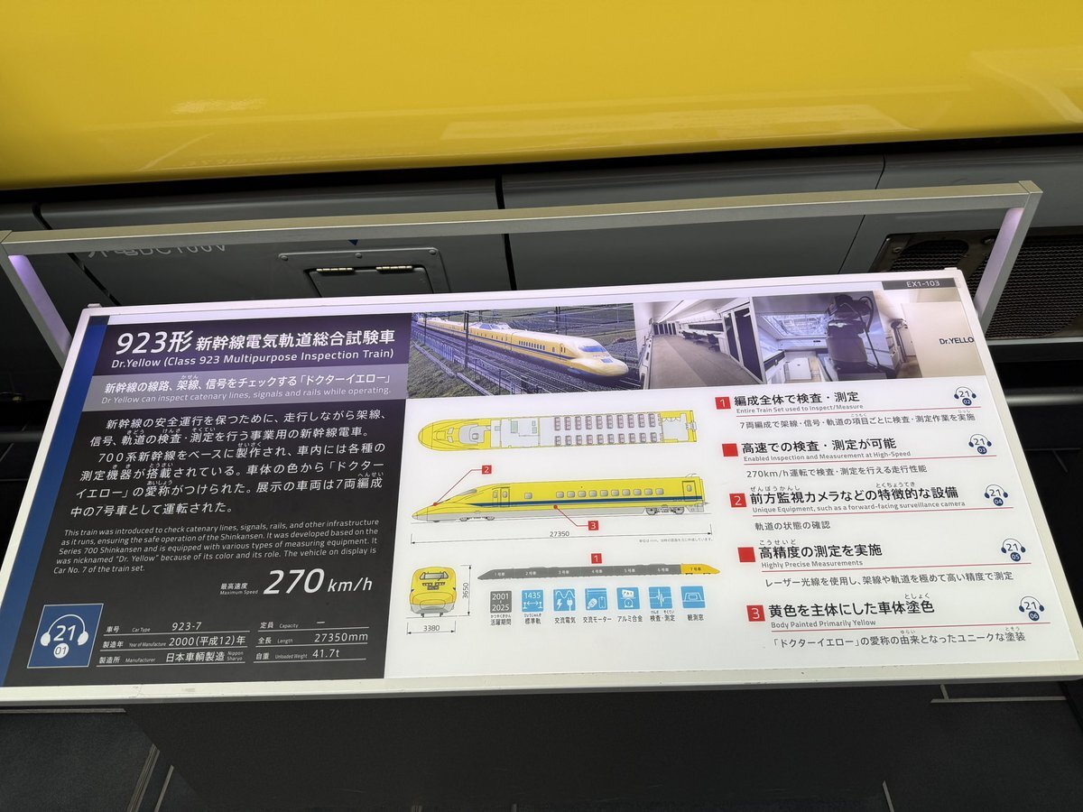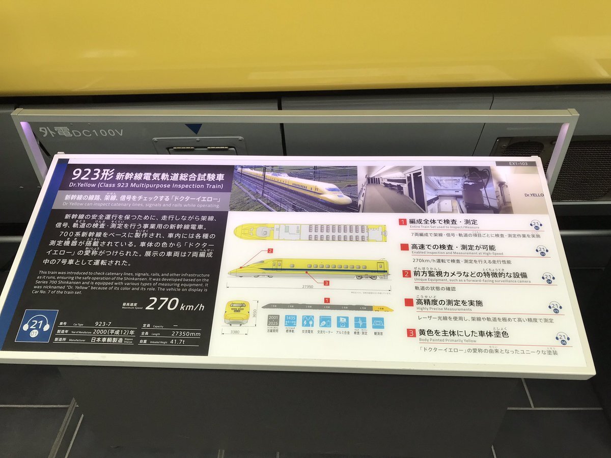 リニア・鉄道館にて 1番撮りたかった車両撮れました😆 923型新幹線電気軌道総合試験車 T4編成 通称「ドクターイエロー」 T4編成は今年1月に引退して 最近ここに展示されてから 撮りに来れる機会を伺ってたが やっと撮れた📸 #T4編成 #ドクターイエロー pic.x.com/5Fgp3OU4cE