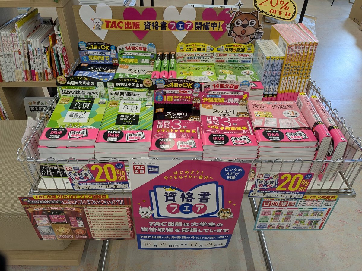 TAC出版20%OFFフェア開催中!! 期間:10月27日〜11月30日まで 簿記の合格テキスト&問題集もミニサイズ登場!!自分に合った一冊を見つけてください✨️