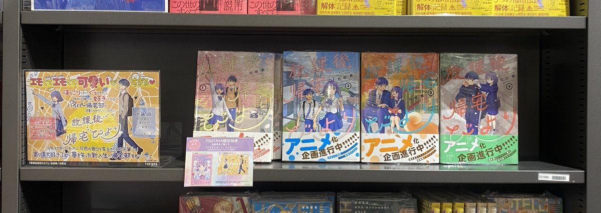 ◆コミックフェア情報◆ ✨新刊5巻発売記念フェア✨ 『#放課後帰宅びより』 対象タイトル購入でTSUTAYA限定イラストカードをプレゼント! 【展開場所】 ・新刊5巻:新刊売り場 ・1~4巻:青年コミック売り場 おひとり様各巻2冊まで 特典は無くなり次第終了 #超コミツタ #TSUTAYA #TBS亀戸 pic.x.com/6a9EApmadr