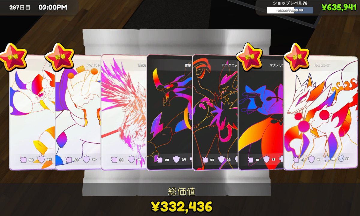 1000万超えきた・・・ ちなみに同じカード持ってたけどそちらは評価9だったので今回2枚目で評価10 どうせなら別の種類のカードほしかったがとりあえずはよしとする #カードショップシミュレーター #TCGCardShopSimulator pic.x.com/A7zU9Brp0C