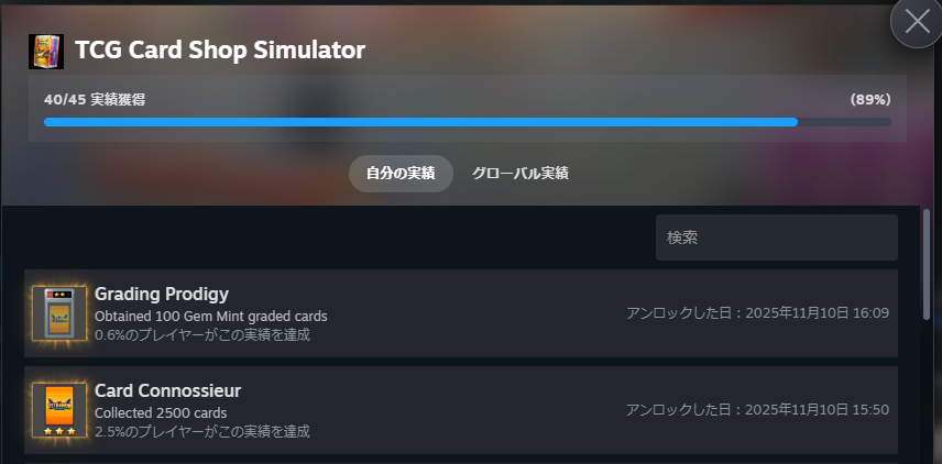 #TCGCardshopSimulator 2500種類収集をやっと達成!フルコンプやんなくていいや。 合わせて鑑定にも出してるけどランク10取得を500枚はきついな。既に飽きていてパックを剥いてると眠くなるw同じカードでランク1-10もなかなかきつい。 たまにカード強盗とか来てくれないとつまらんて pic.x.com/lHr4wgxZdA x.com/shidebu3/statu…