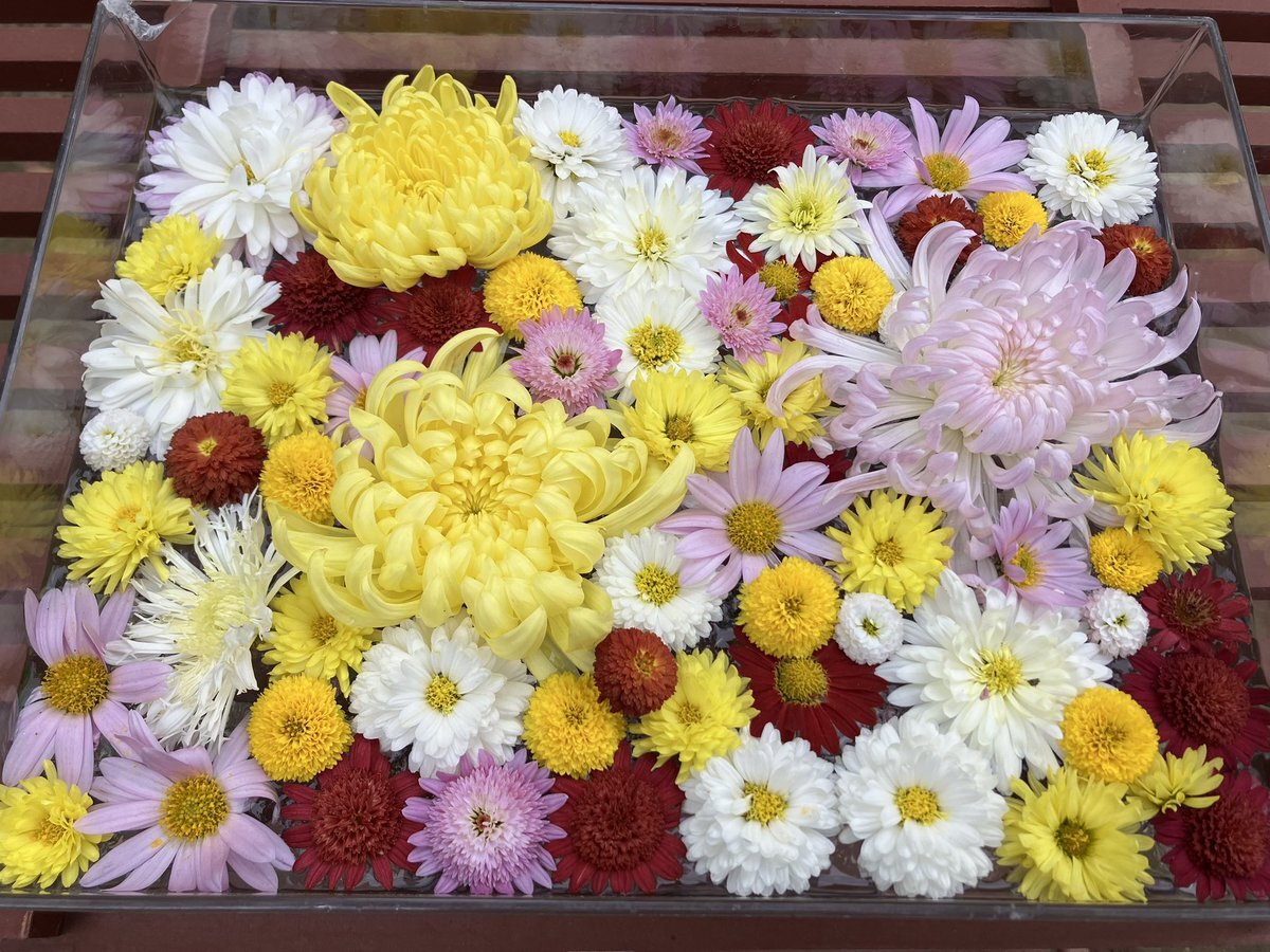 菊まつりで、ところどころに水飾り?コーナーがあり、色とりどりの菊で彩られて、それは贅沢な美しさでした🥰 花の大きさも花びらも、もちろん色も、本当に多種多様で。 それぞれにそれぞれの個性が素敵だなと思いました。 #羽生くんお花をどうぞ #羽生クラスタ植物部 #TLを花でいっぱいにしよう pic.x.com/fQLmTzz6id