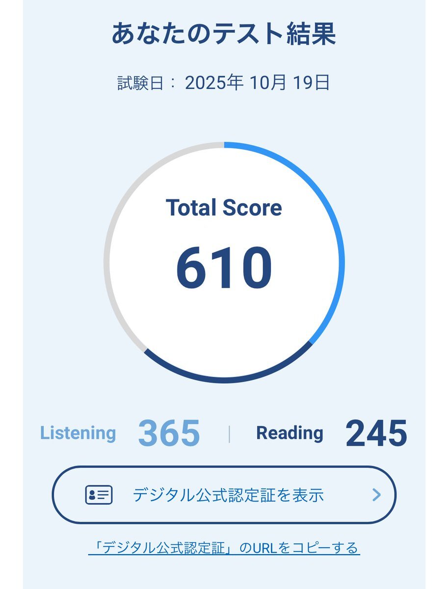 昨年TOEICの日なるものを知ってから ずっと10/19に受けたくて念願の受験ᝰ✍🏻 安定にPart7で大幅失点してそうだけど 頑張ったので💮としておきます🙂↔️ #TOEICの日 pic.x.com/g89grcJMKm x.com/quizknock_mana…