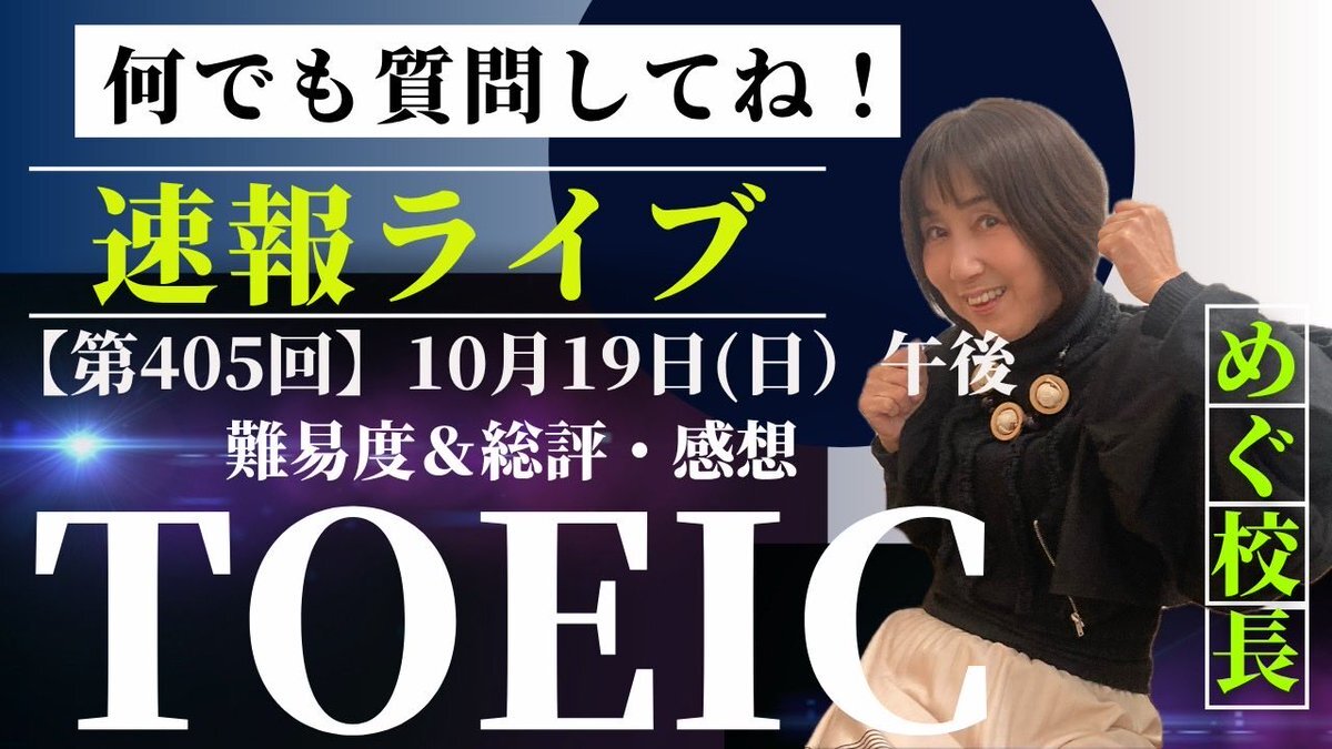 10月19日TOEIC、お疲れさまでした!TOEIC速報、19:30〜始まります!! 今日は、10月19日(トーイック)の日! 皆様、お待ちしてます! youtube.com/watch?v=aUwA4h… #TOEIC #TOEIC速報 #TOEIC10月19日 #TOEIC午後 #TOEIC午後速報はめぐ校長 #TOEIC第405回 #TOEICの日 pic.x.com/OeiP57Pv39