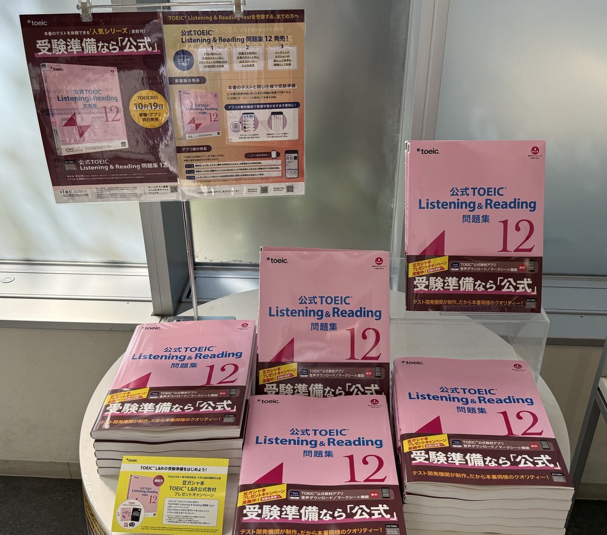【Booksフロンテ】 昨日10月19日は #TOEICの日 「公式TOEICListening &Reading問題集12」 ⭐️販売中⭐️ フロンテでも人気のシリーズの最新刊です。 今回の表紙カバーはピンク🩷です。 さらに今だけ!購入時に豆ガシャ本をプレゼント🎁なくなり次第終了です! 是非お手に取ってご覧ください。 pic.x.com/byhrGO6vs3