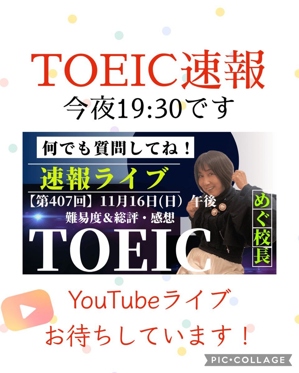 \TOEICお疲れさまでした!/ 19:30〜TOEIC速報お待ちしてます! youtube.com/watch?v=54Bghi… #TOEIC #TOEIC速報 #TOEIC11月16日 #TOEIC午後 #TOEIC午後速報はめぐ校長 pic.x.com/bYTapbQp8p