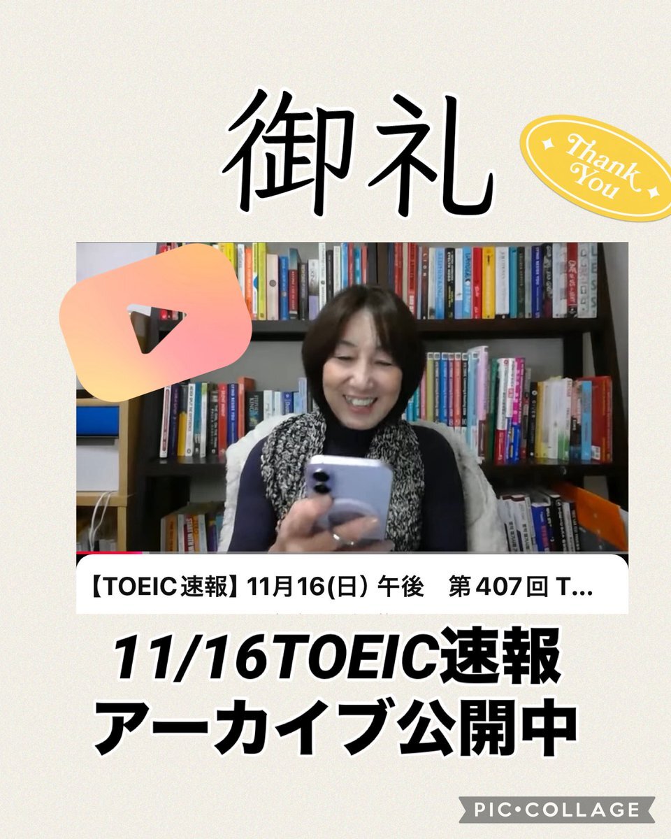 昨夜TOEIC速報、たくさんのご参加ありがとうございました✨ リアルタイムで見られなかった方のために、アーカイブ公開中です。 お役に立てたら嬉しいです!(^^) youtube.com/watch?v=54Bghi… #TOEIC11月16日 #TOEIC午後速報はめぐ校長 #TOEIC #TOEIC速報 pic.x.com/Go9ImnuZQy