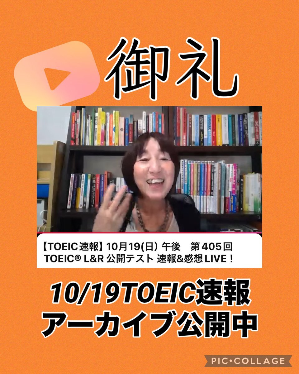 📢【TOEIC速報ライブ アーカイブ公開中!】 10/19日実施のTOEIC速報 ご視聴・ご参加くださった皆さま、本当にありがとうございました🙌 見逃した方、アーカイブで是非👀✨ 🔗 youtube.com/watch?v=aUwA4h… #TOEIC #TOEIC速報 #英語学習 #TOEIC対策 #TOEIC10月19日 #TOEIC午後速報はめぐ校長 @MegKocho pic.x.com/nhYyCO7JPN
