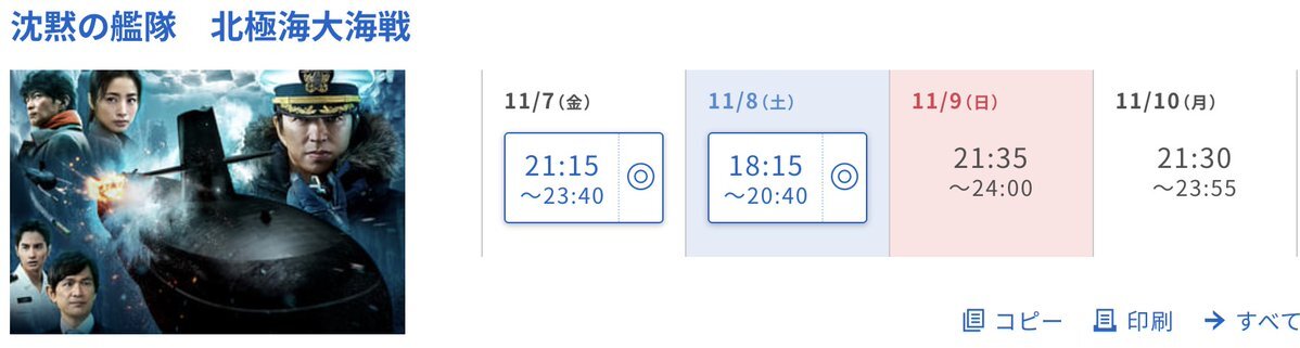 返信先:@yakiniku_0311#TOHOシネマズ日比谷 『終了予定』とは表記ありませんが11月10日(月)までみたいです😫💦 11月11日(火)~ #沈黙の艦隊北極海大海戦 の表記が無いです .˚‧º·(ฅдฅ。)‧º·˚.エーン