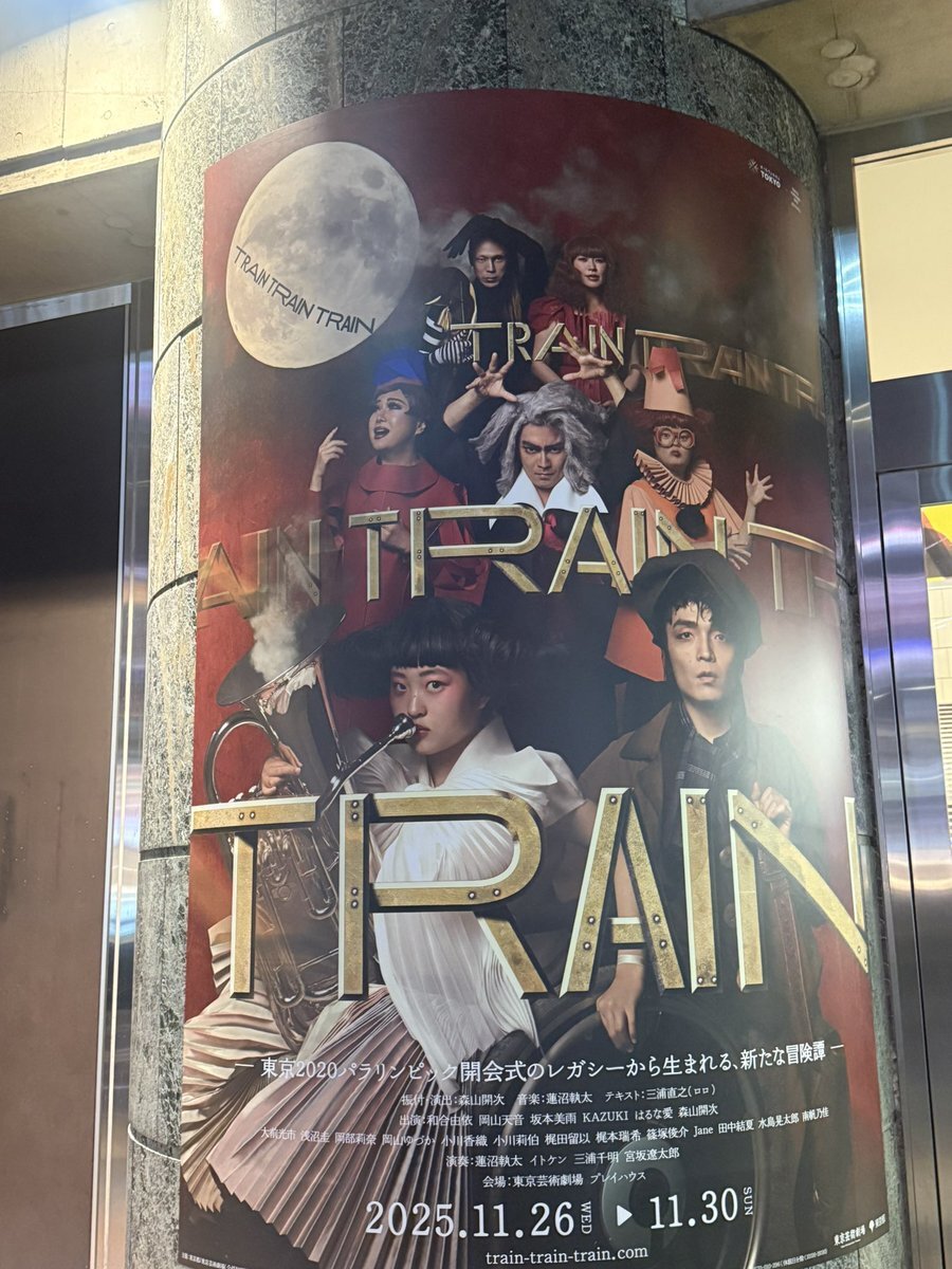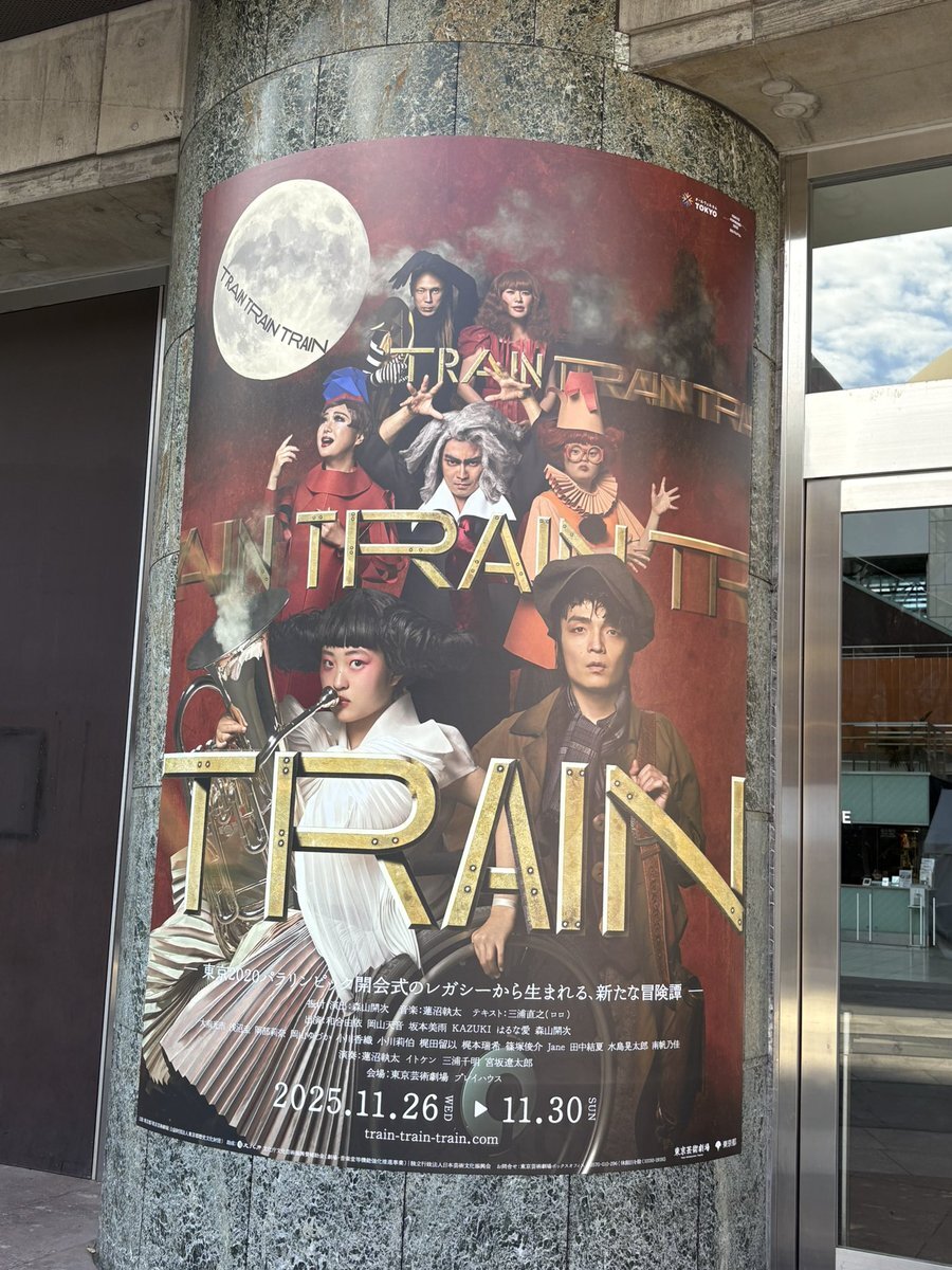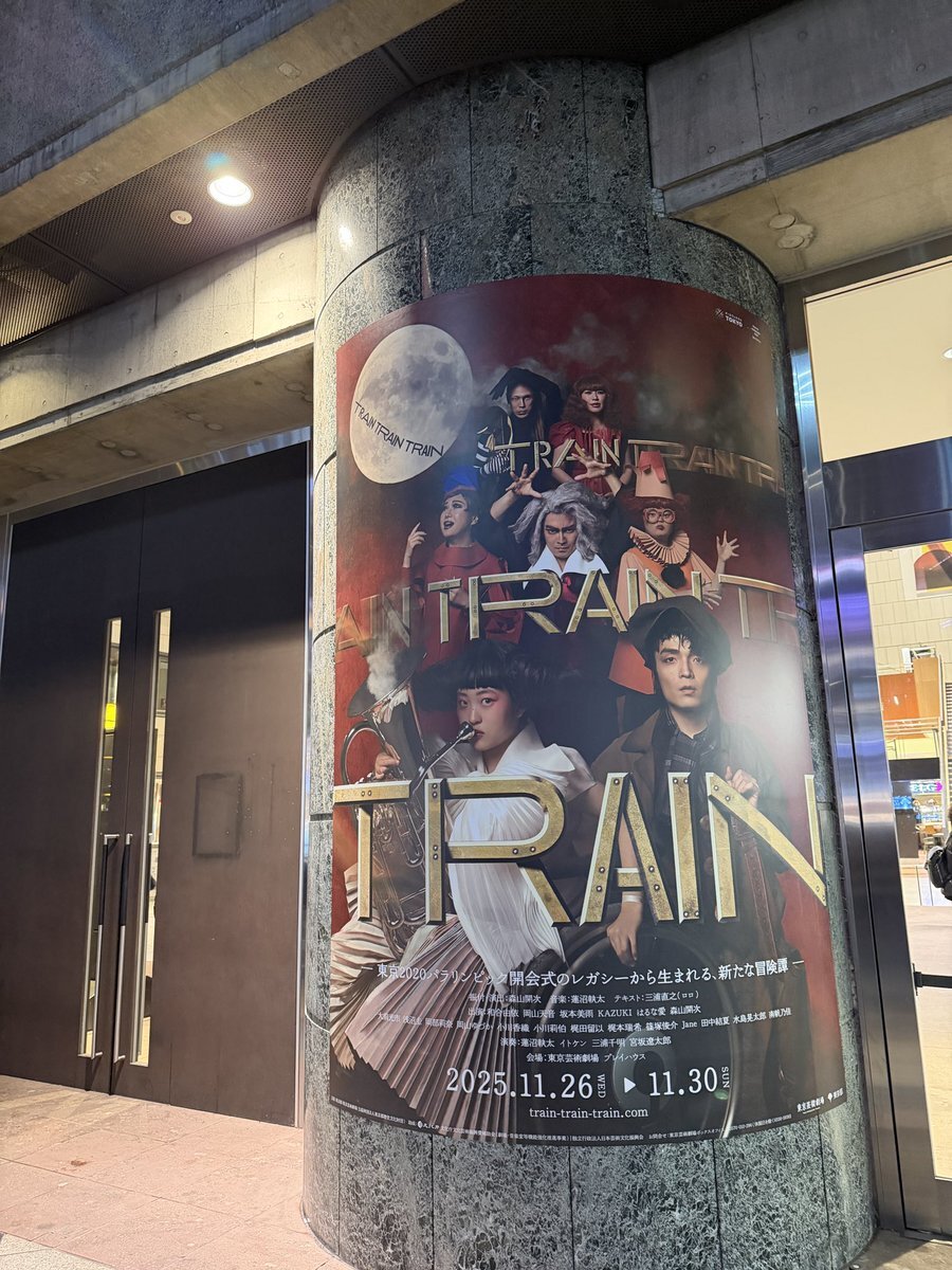 芸劇前で発見! 楽しみすぎるー!このキービジュアル真ん中のカズキさんの圧が😂 いやもう、ミズキちゃんやカズキさん知ったのが東京パラリンピックの開会式きっかけだし、とにかくこのメンツ期待しかないのよ✨️ #TRAINTRAINTRAIN 🚂 #芸劇 pic.x.com/YpKPmQCOhc