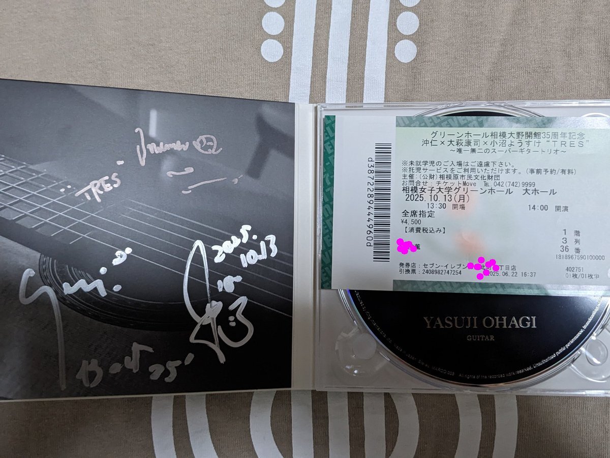 11ヶ月ぶりの #Tres 公演🎶 沖仁さん、大萩康司さん、小沼ようすけさんの3人の演奏で #Bolero を聴いて、滝か稲妻に打たれたかのような覚醒⚡️ 〜私、この時代に生まれてTRESのギターを生で聴ける環境にいられて、かなり幸せ🍷 本日は、大萩さんのCDを購入♪ 今、聴きながら👍️ pic.x.com/wC93u8dfZZ